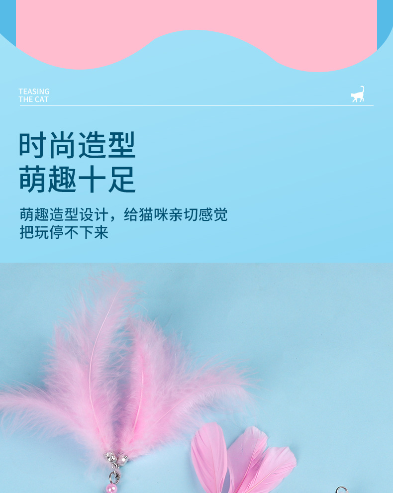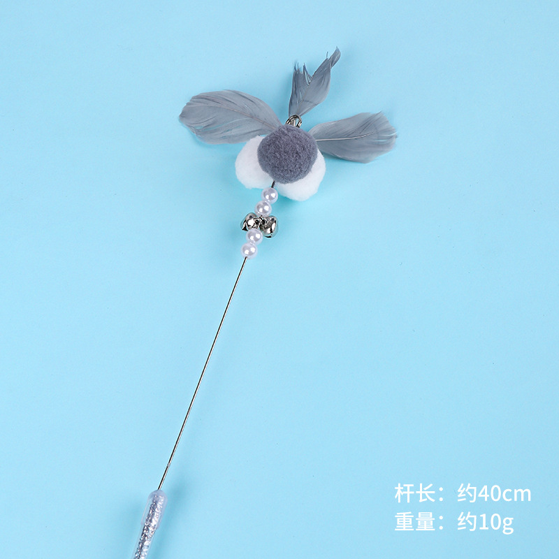 재미 고양이 스틱 스틸 와이어 요정 술 깃털 벨 고양이 대화 형 고양이 장난감 물린 방지 대화 형 애완 동물 용품 도매