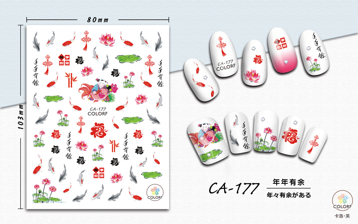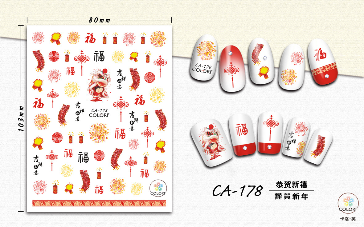 2024 새해 인기있는 CA 시뮬레이션 네일 스티커 매년 더 많은 포춘 고양이 새해 창 꽃 종이 컷 잉크 그림 중국
