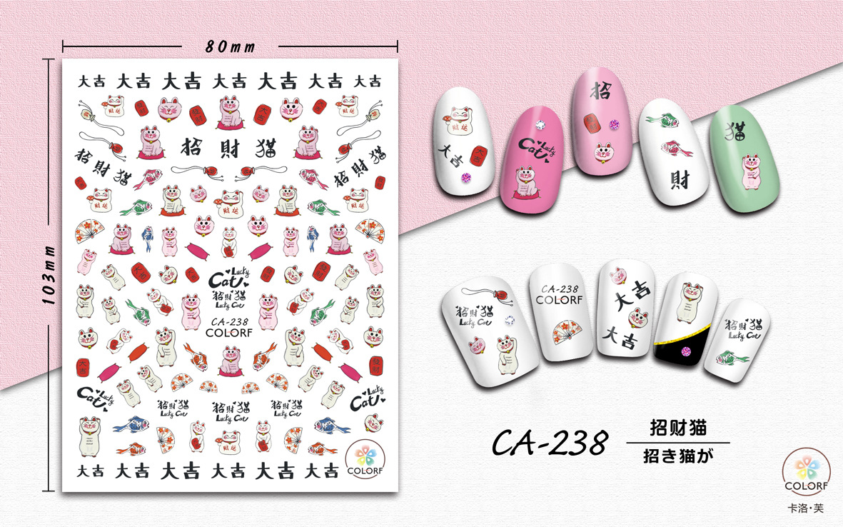 2024 새해 인기있는 CA 시뮬레이션 네일 스티커 매년 더 많은 포춘 고양이 새해 창 꽃 종이 컷 잉크 그림 중국스토어 가기