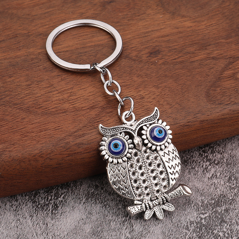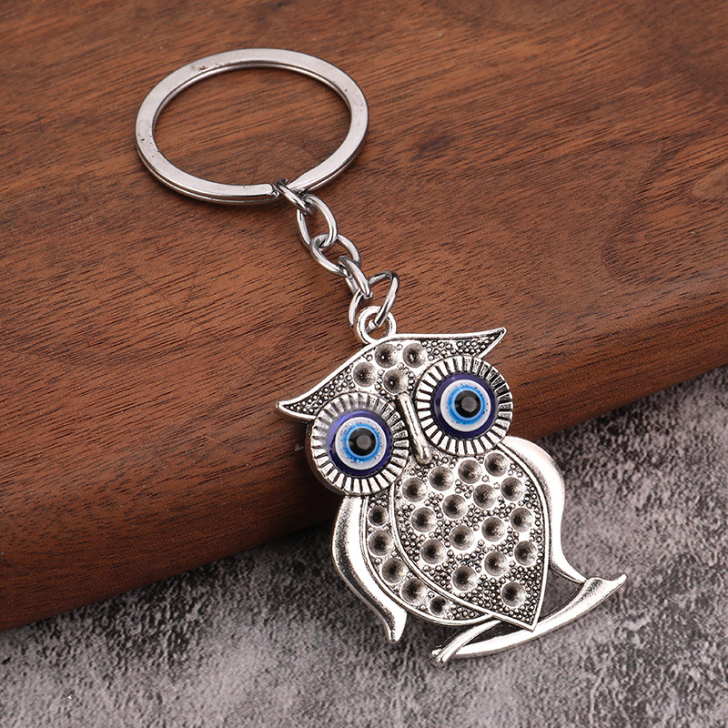 국경 간 뜨거운 판매 환경 보호 합금 파란 눈 올빼미 악마의 눈 빈티지 액세서리 펜던트 키 체인