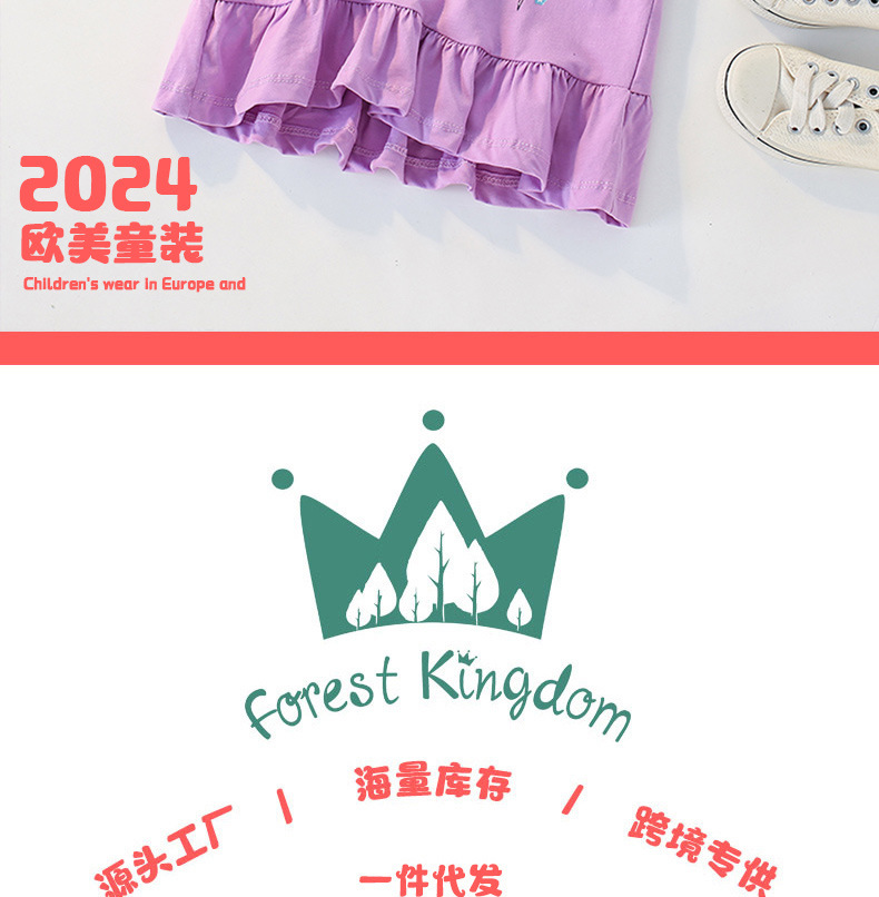 2024 여름 새 소녀 반팔 티셔츠 아동복 유럽과 미국 어린이 만화 인쇄 탑 원피스 배달