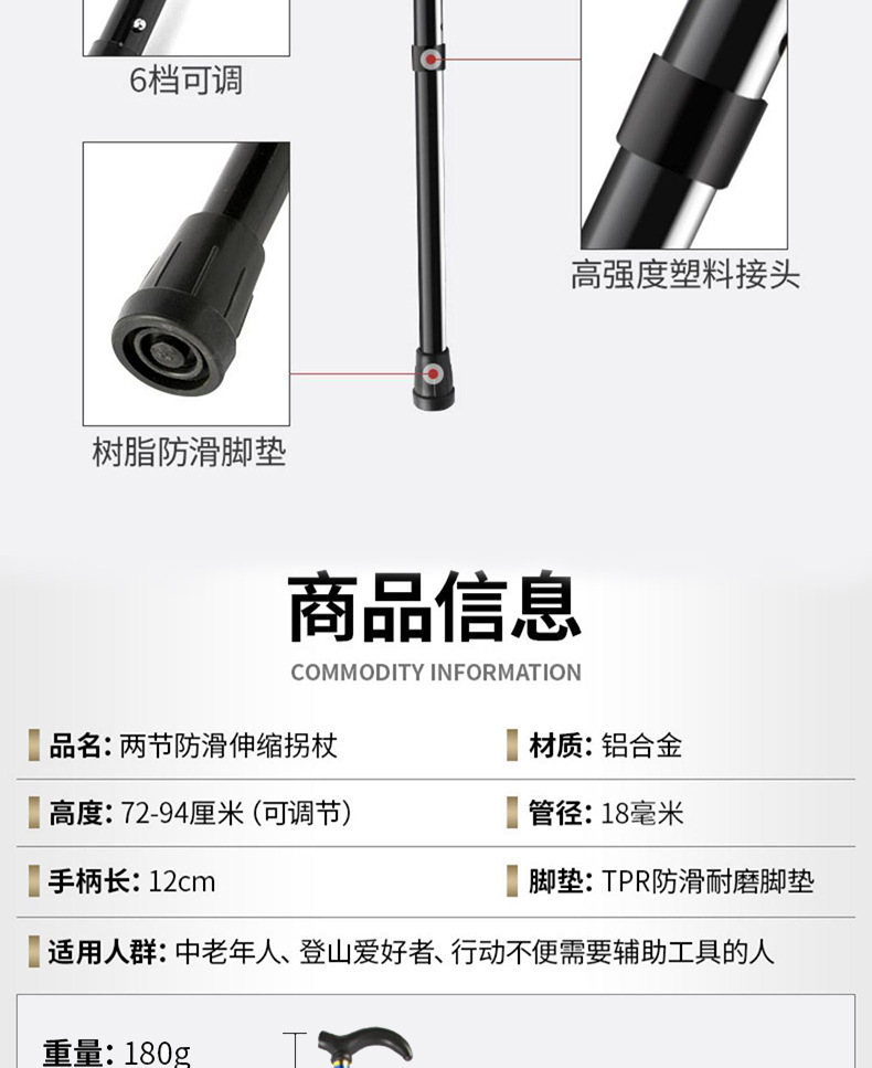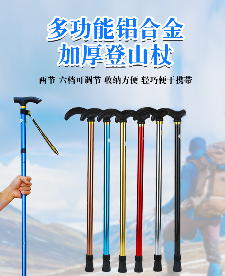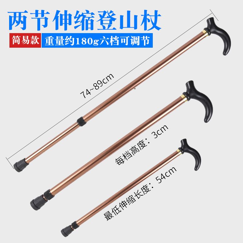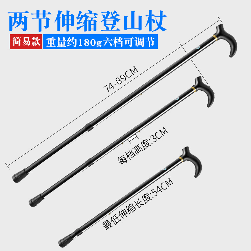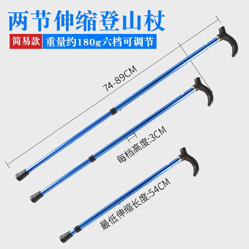 노인 알루미늄 합금 미끄럼 방지 워킹 스틱 2 섹션 텔레스코픽 조절 트레킹 스틱을위한 국경 간 새로운 다기능 야외 하이킹 목발