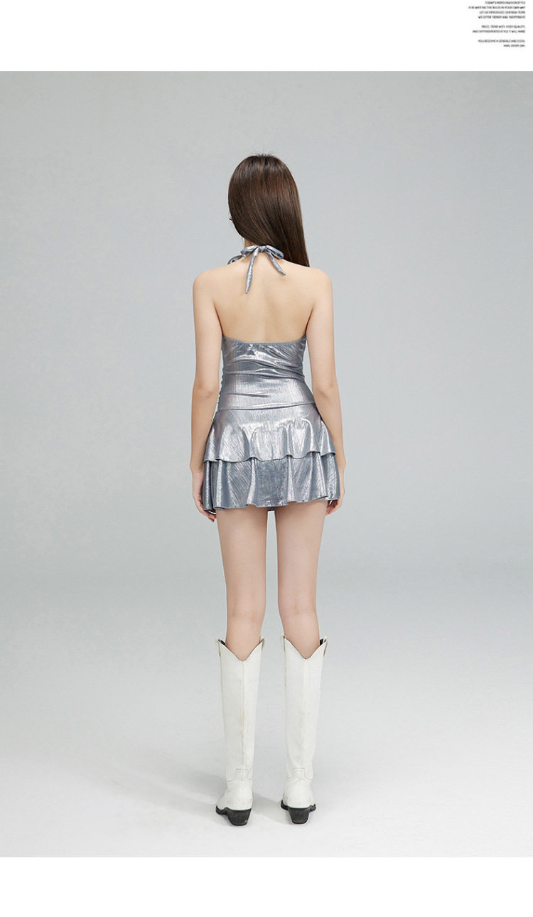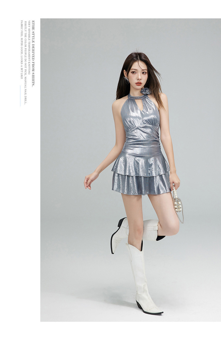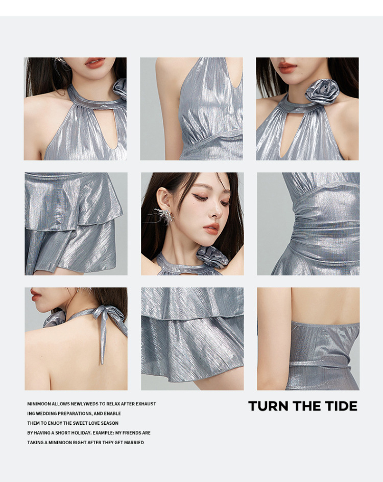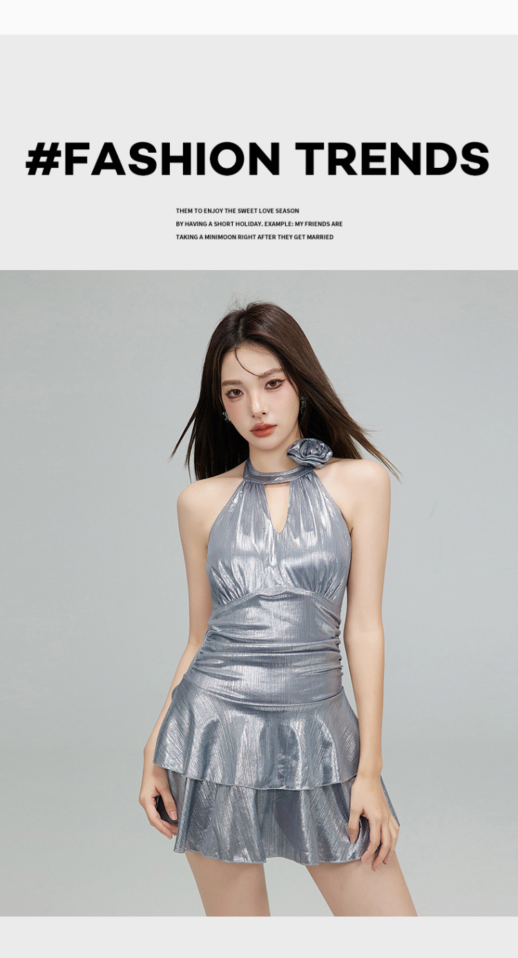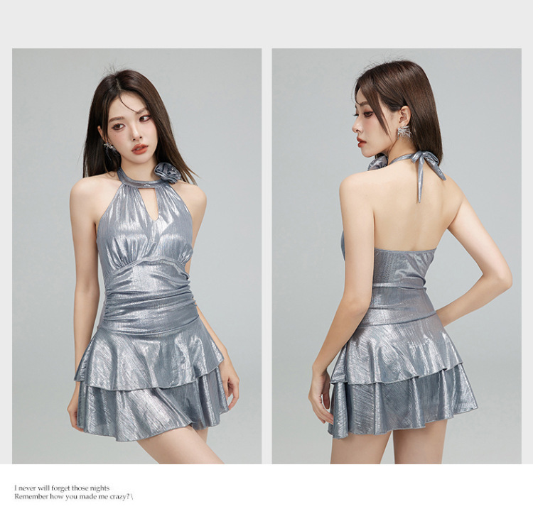 设计感辣妹裙子女神范泳衣女新款韩版气质花朵挂脖聚拢泡温泉泳装
