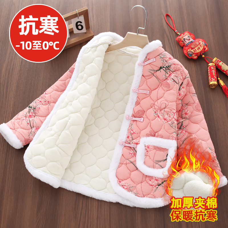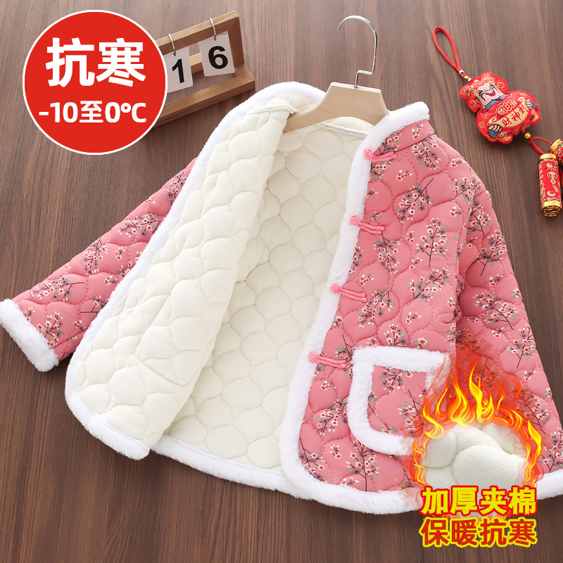 인터넷 유명 인사 어린이 꽃면 패딩 재킷 소녀의 북동쪽 큰 꽃 자켓이 두껍게 겨울 중국 스타일 새해 인사말 옷 레드 드래곤스토어 가기