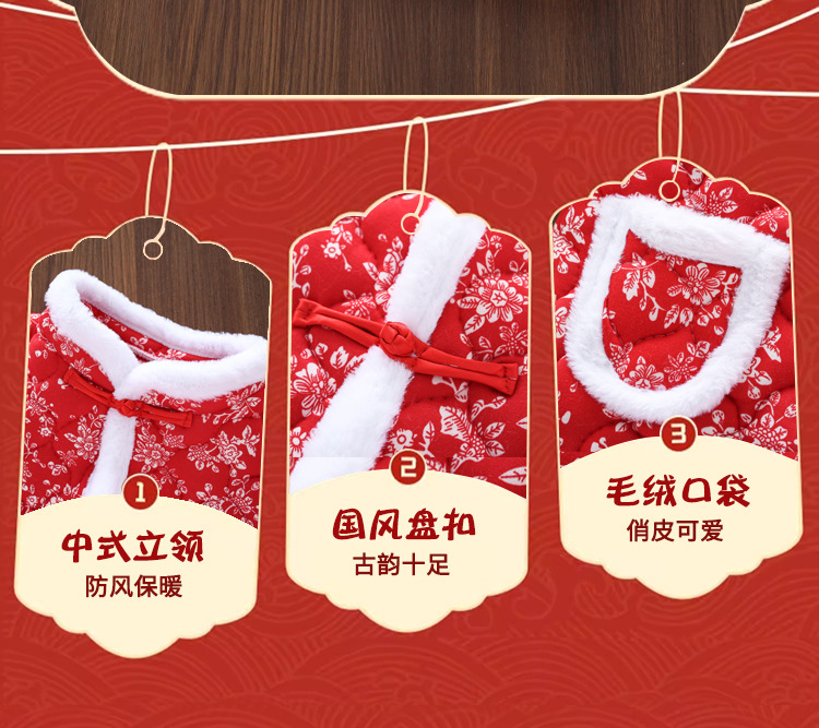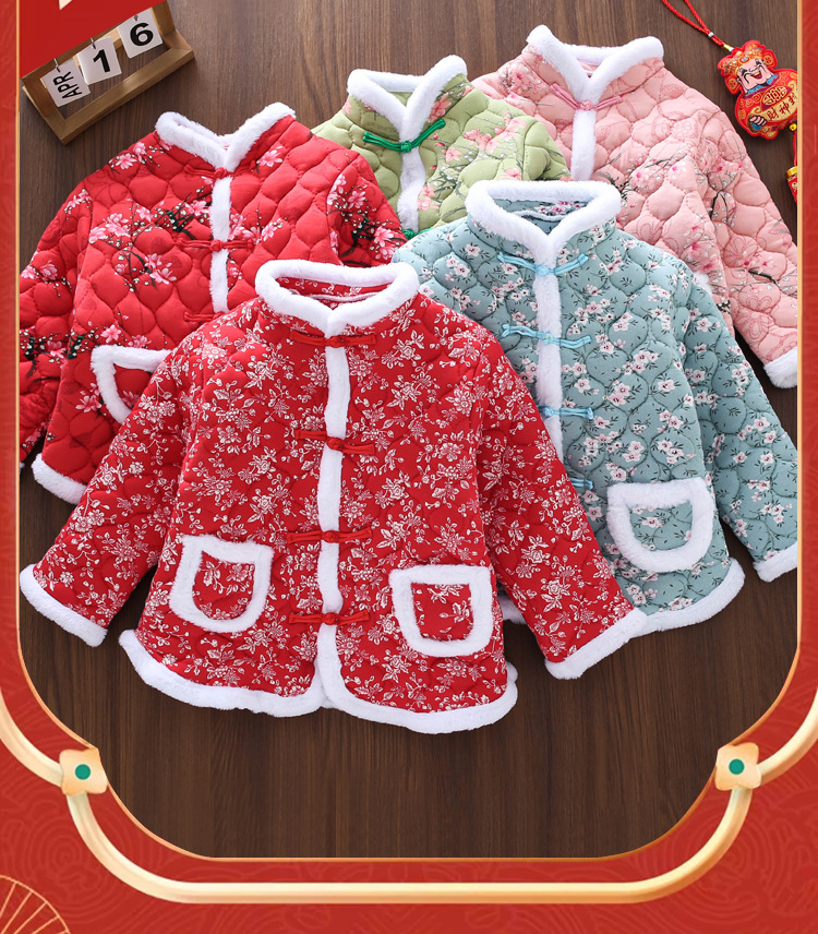 인터넷 유명 인사 어린이 꽃면 패딩 재킷 소녀의 북동쪽 큰 꽃 자켓이 두껍게 겨울 중국 스타일 새해 인사말 옷 레드 드래곤