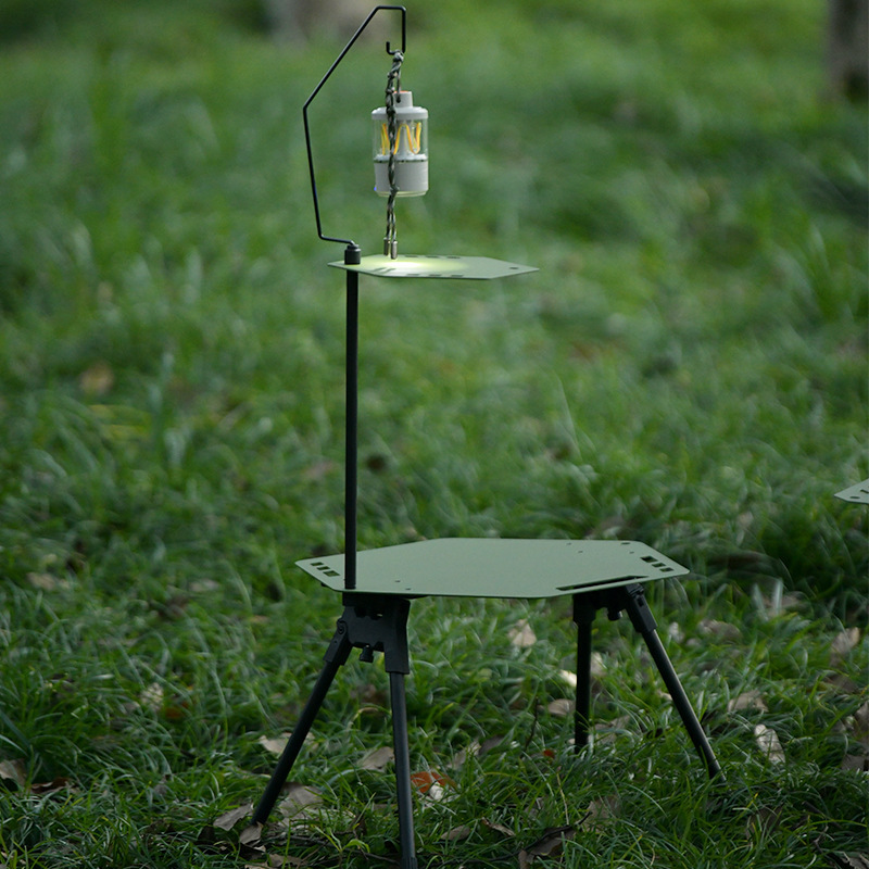 야외 캠핑 전술 육각형 테이블 휴대용 접이식 차 테이블 선반 필드 여행 다기능 개폐식 피크닉 테이블
