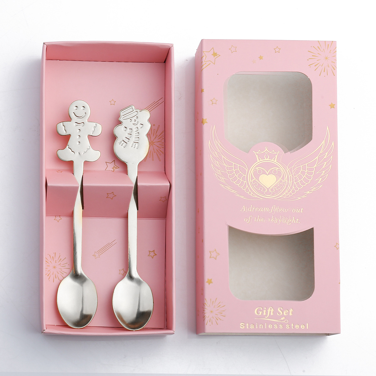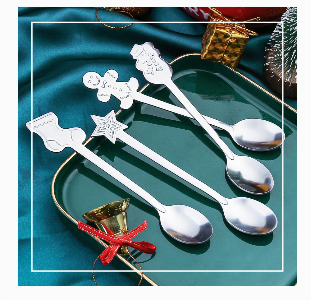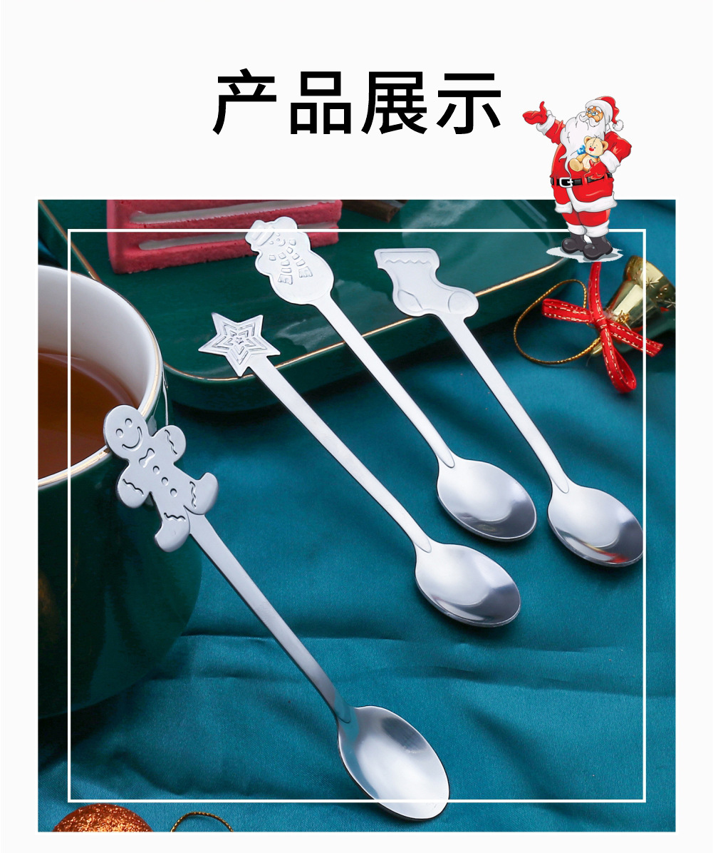 창조적 인 크리스마스 커피 스푼 스테인레스 스틸 디저트 혼합 숟가락 눈사람 만화 숟가락 크리스마스 선물 상자 디저트