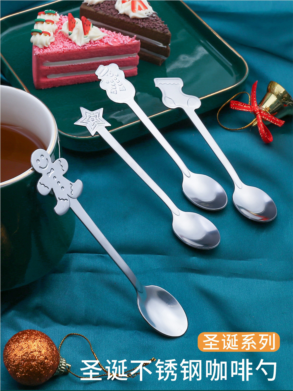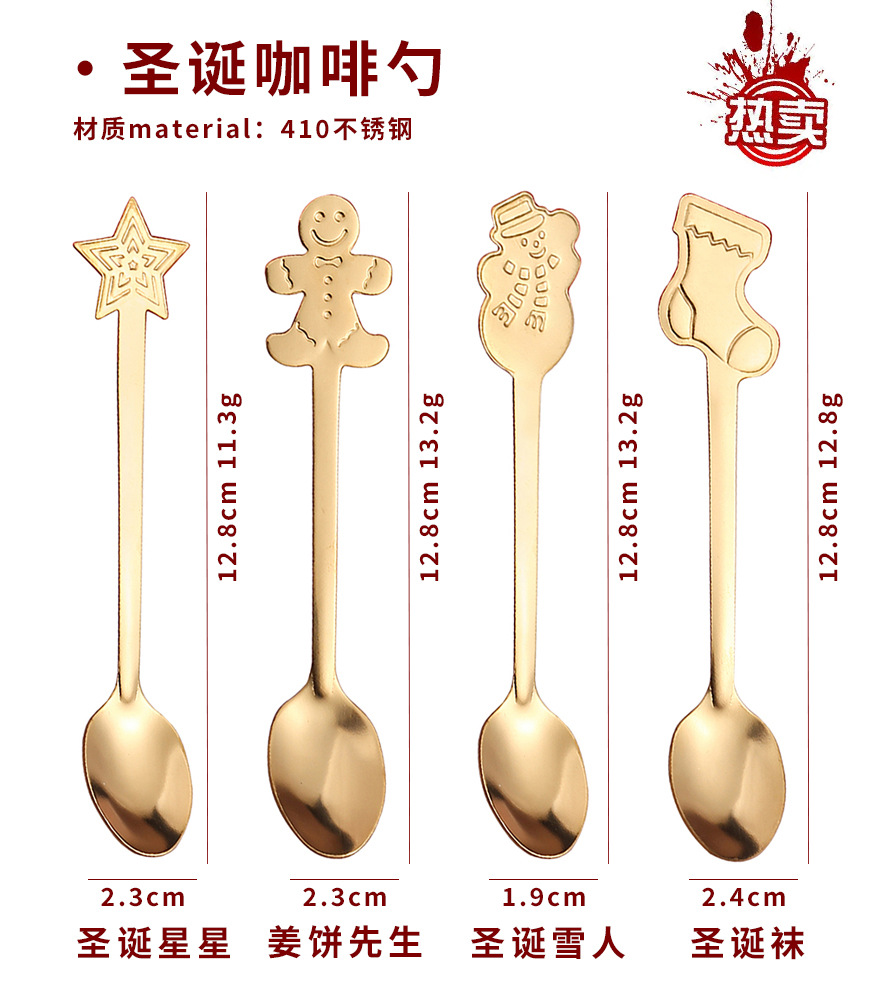 창조적 인 크리스마스 커피 스푼 스테인레스 스틸 디저트 혼합 숟가락 눈사람 만화 숟가락 크리스마스 선물 상자 디저트스토어 가기