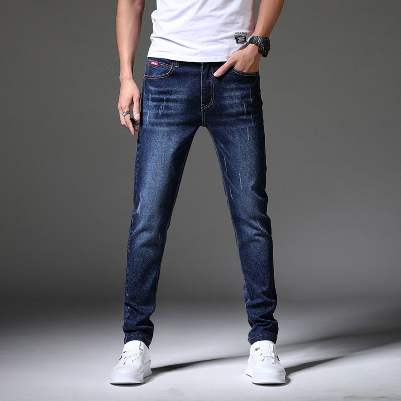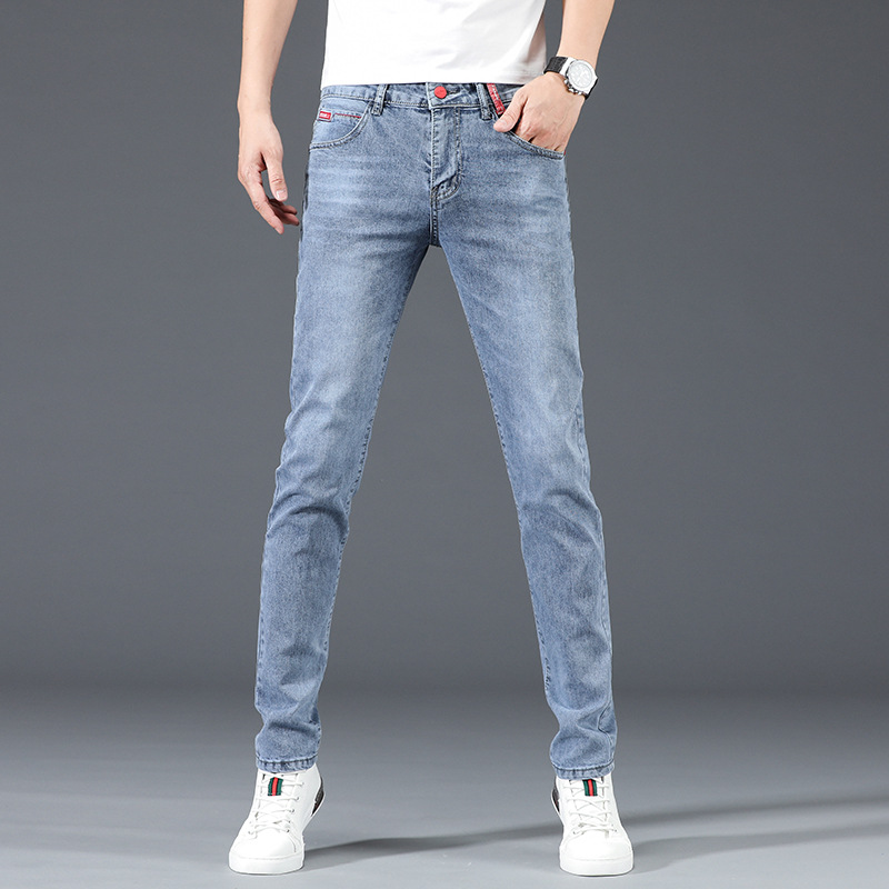 봄과 가을 새로운 남성 청바지 패션 트렌디 한 스트레치 슬림 핏 연필 바지 한국 남성 청소년 데님 바지