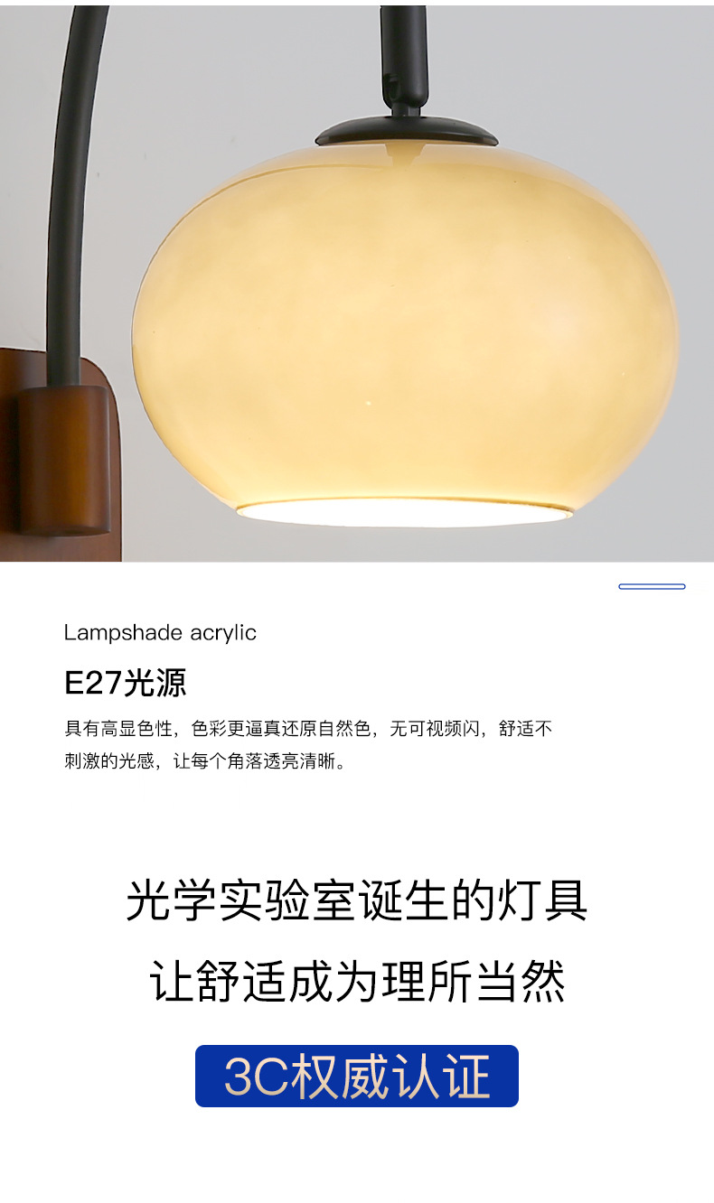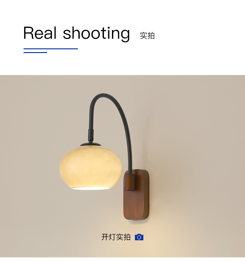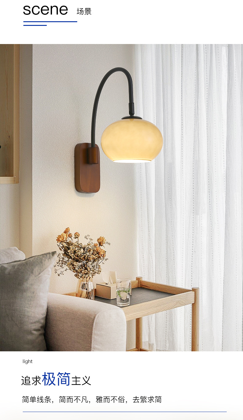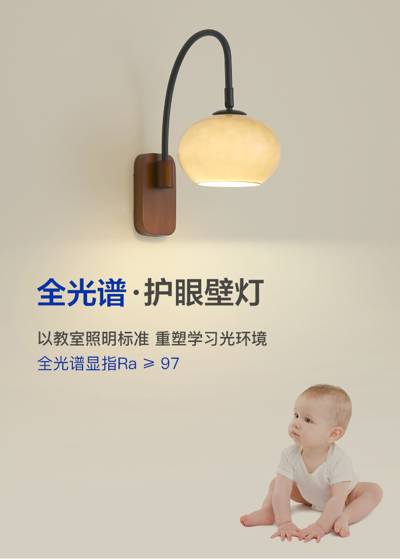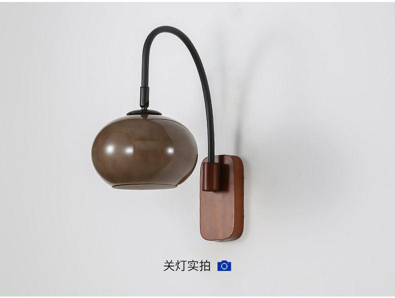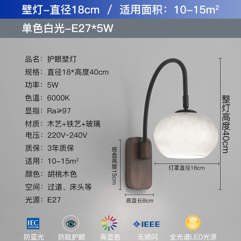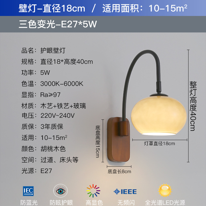 전체 스펙트럼 눈 보호 벽 램프 새로운 중국 호두 컬러 침실 침대 옆 램프 복고풍 유리 복도 통로 벽 램프