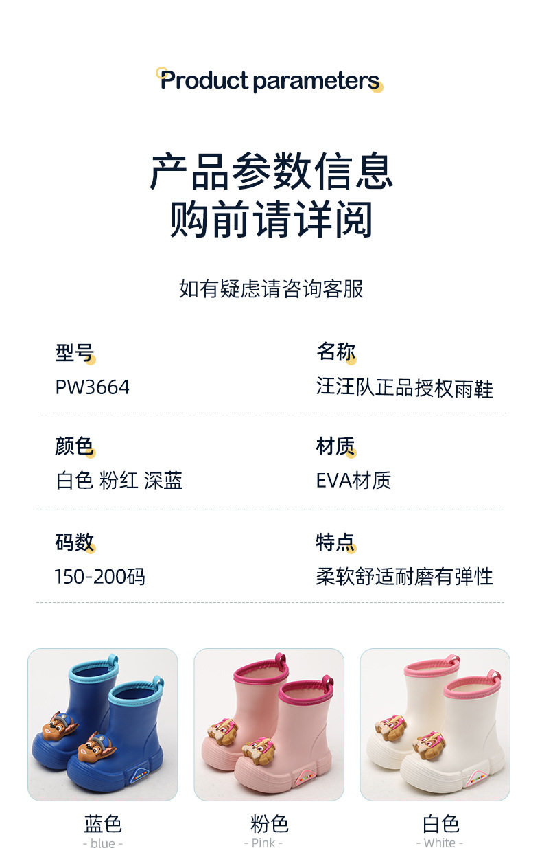 【 30% off 러시 세일】강아지 패트롤 어린이 레인슈즈 미끄럼 방지 레인부츠 초등학생 유아용 방수 신발스토어 가기