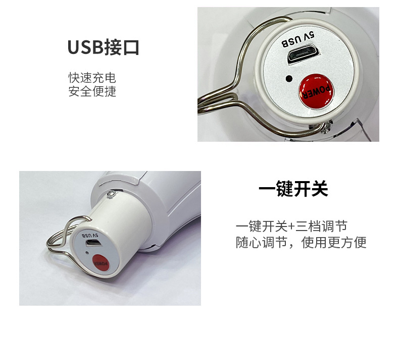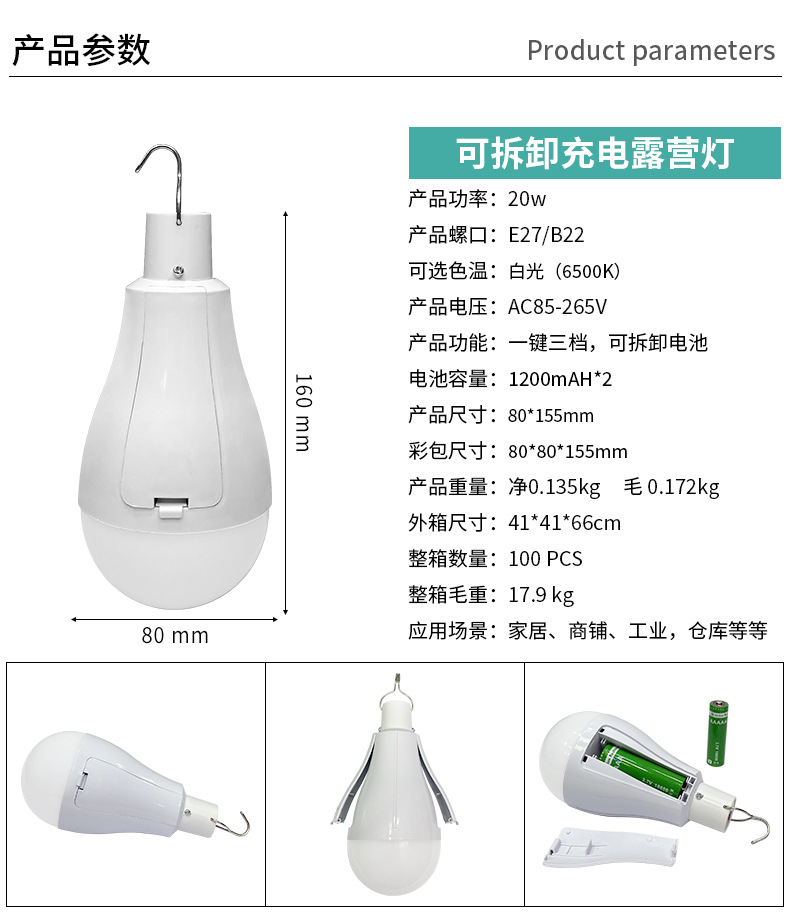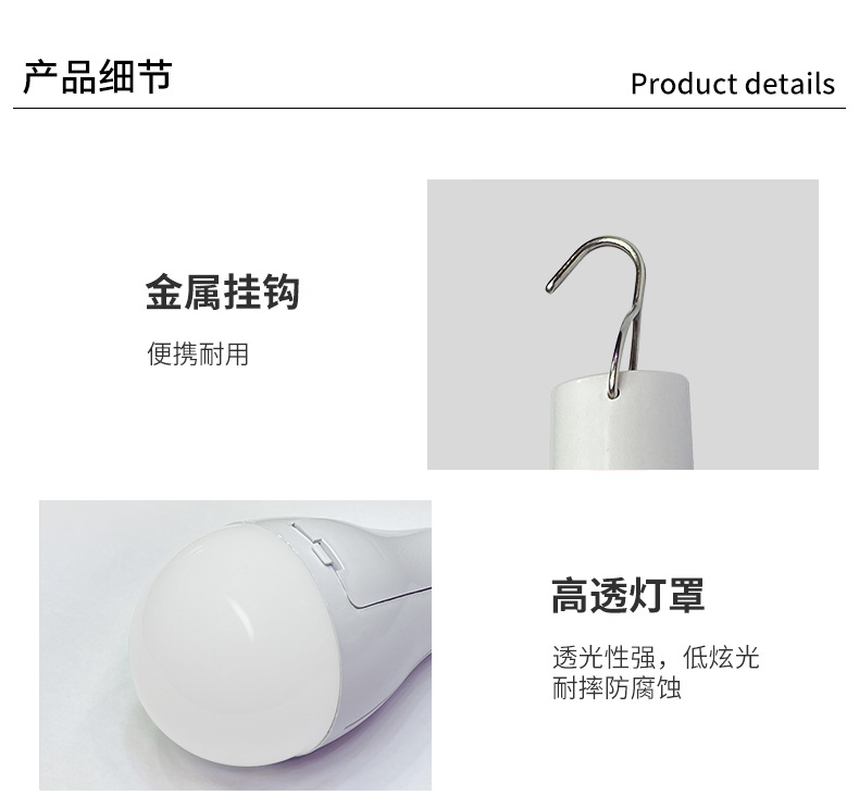 Led 이동식 듀얼 배터리 캠핑 전구 DC 충전식 듀얼 배터리 3 단 디밍 후크 캠핑 라이트
