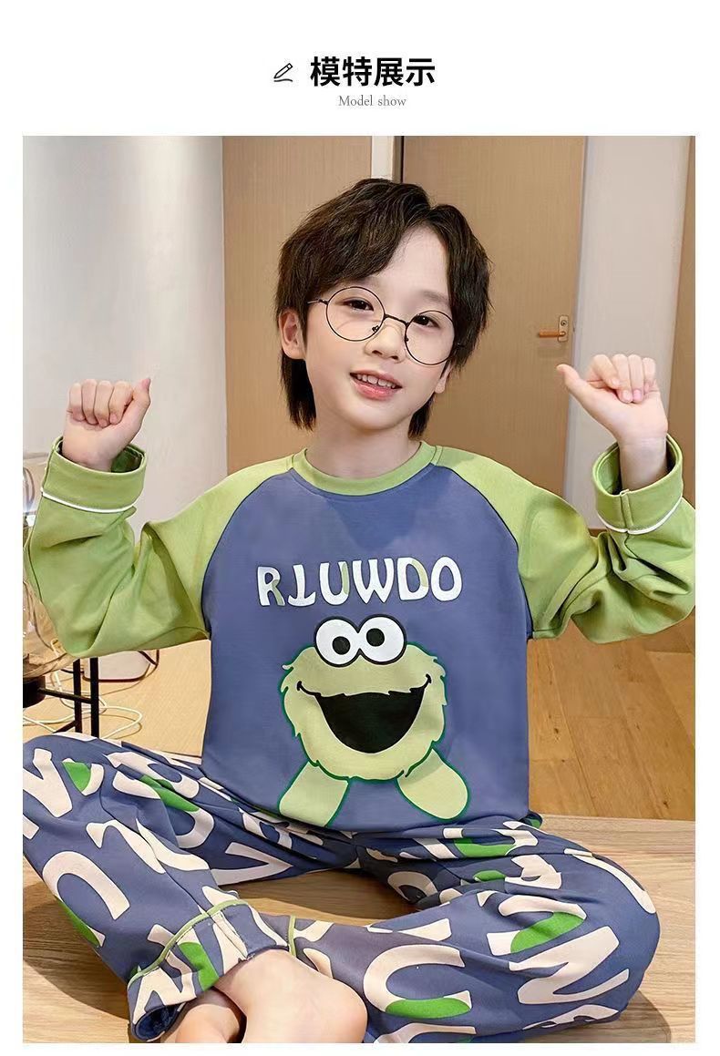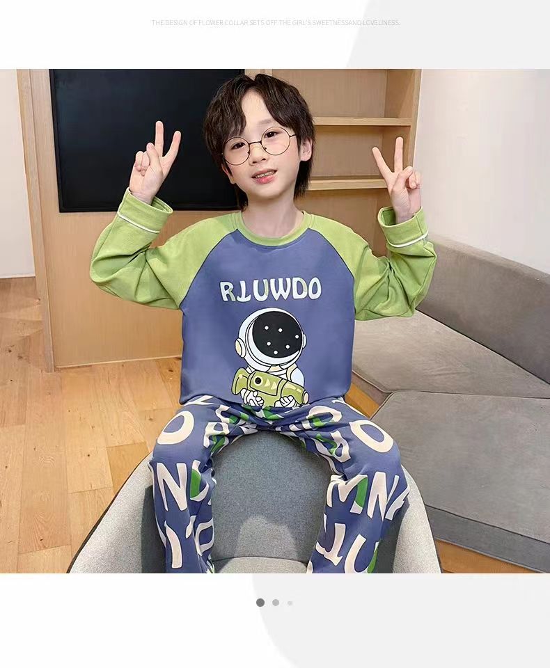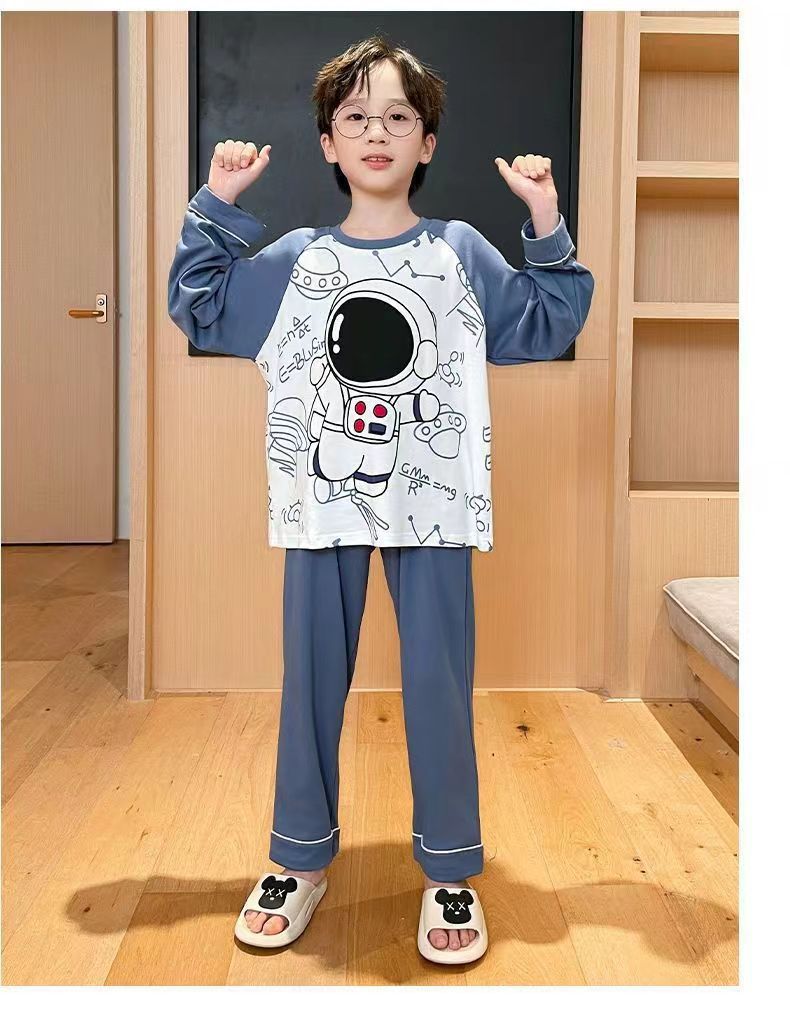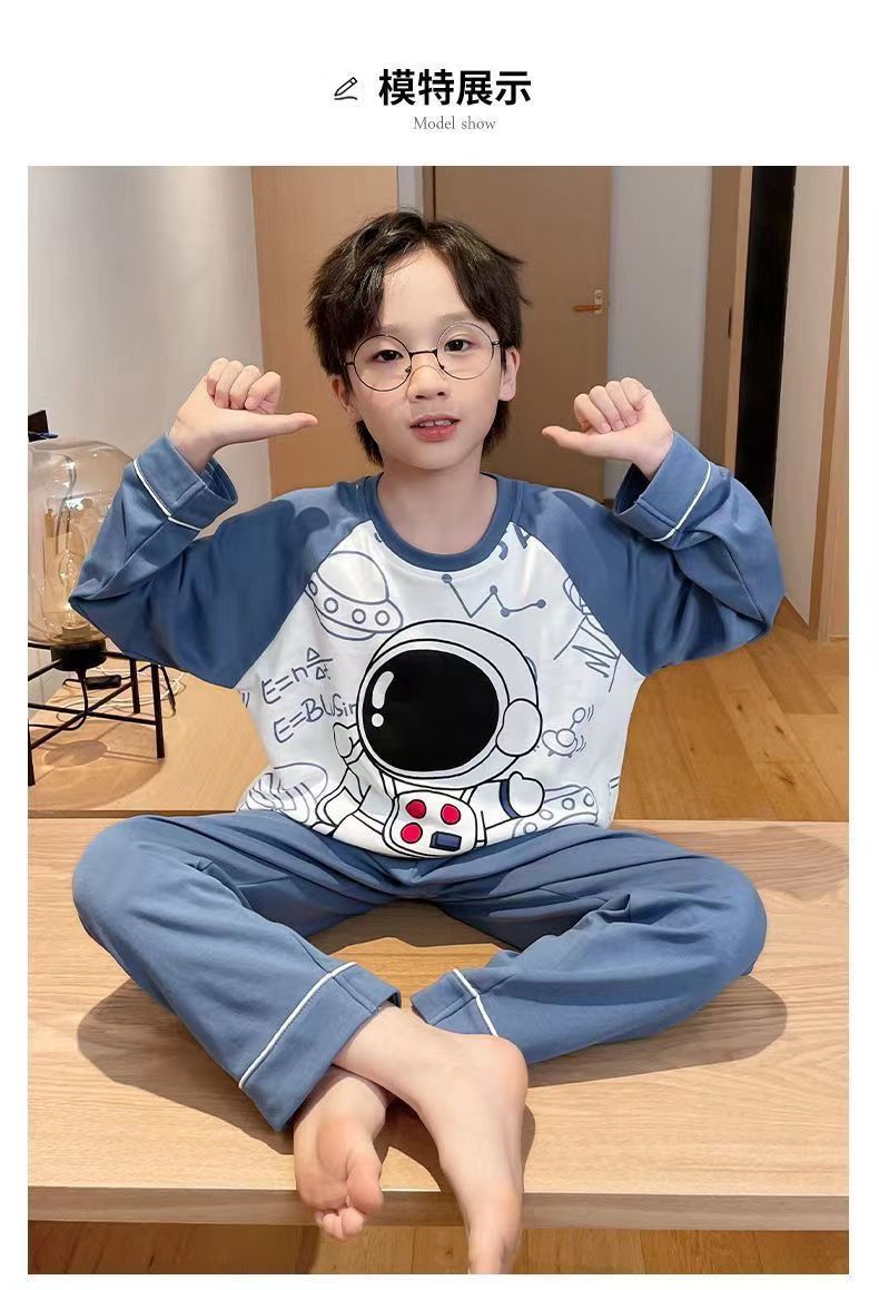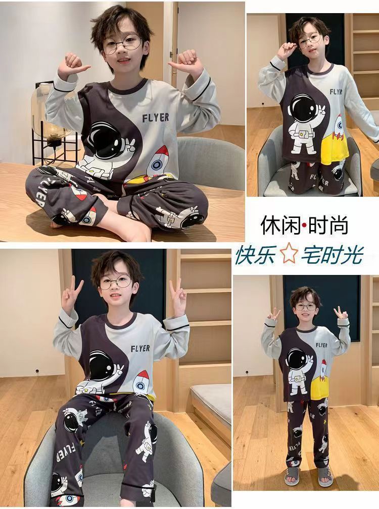 어린이 잠옷 봄과 여름 2024 새 소년 봄과 가을 세트 긴팔 바지 어린이 잠옷 소년 십대스토어 가기
