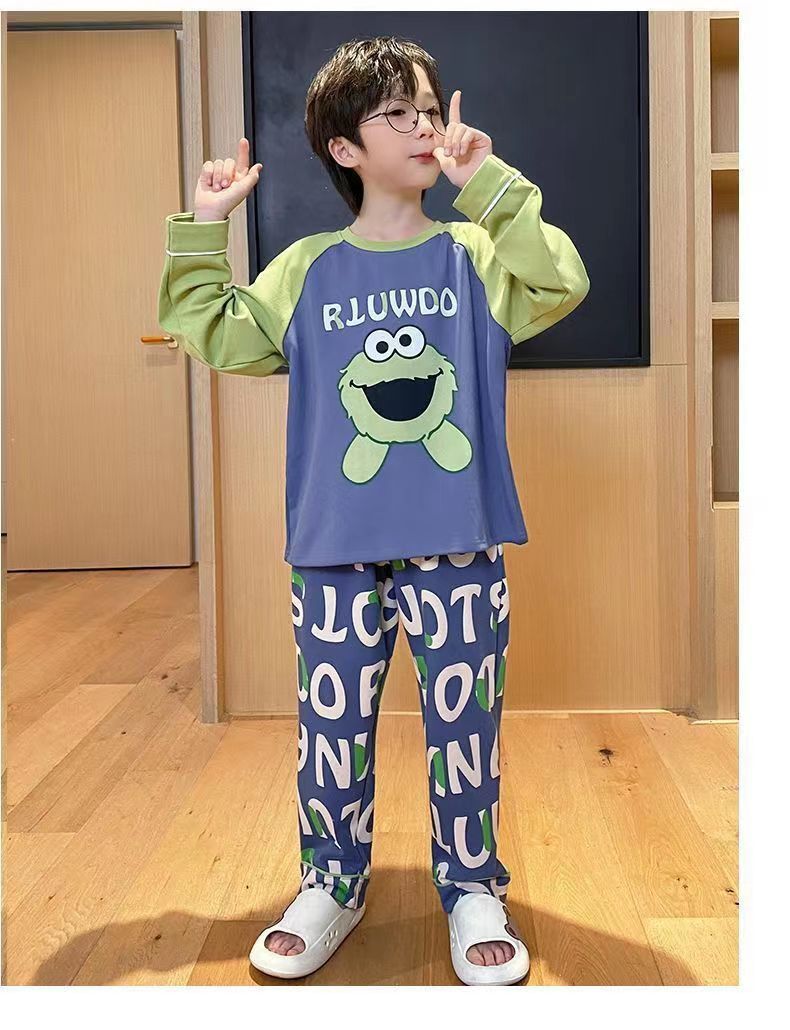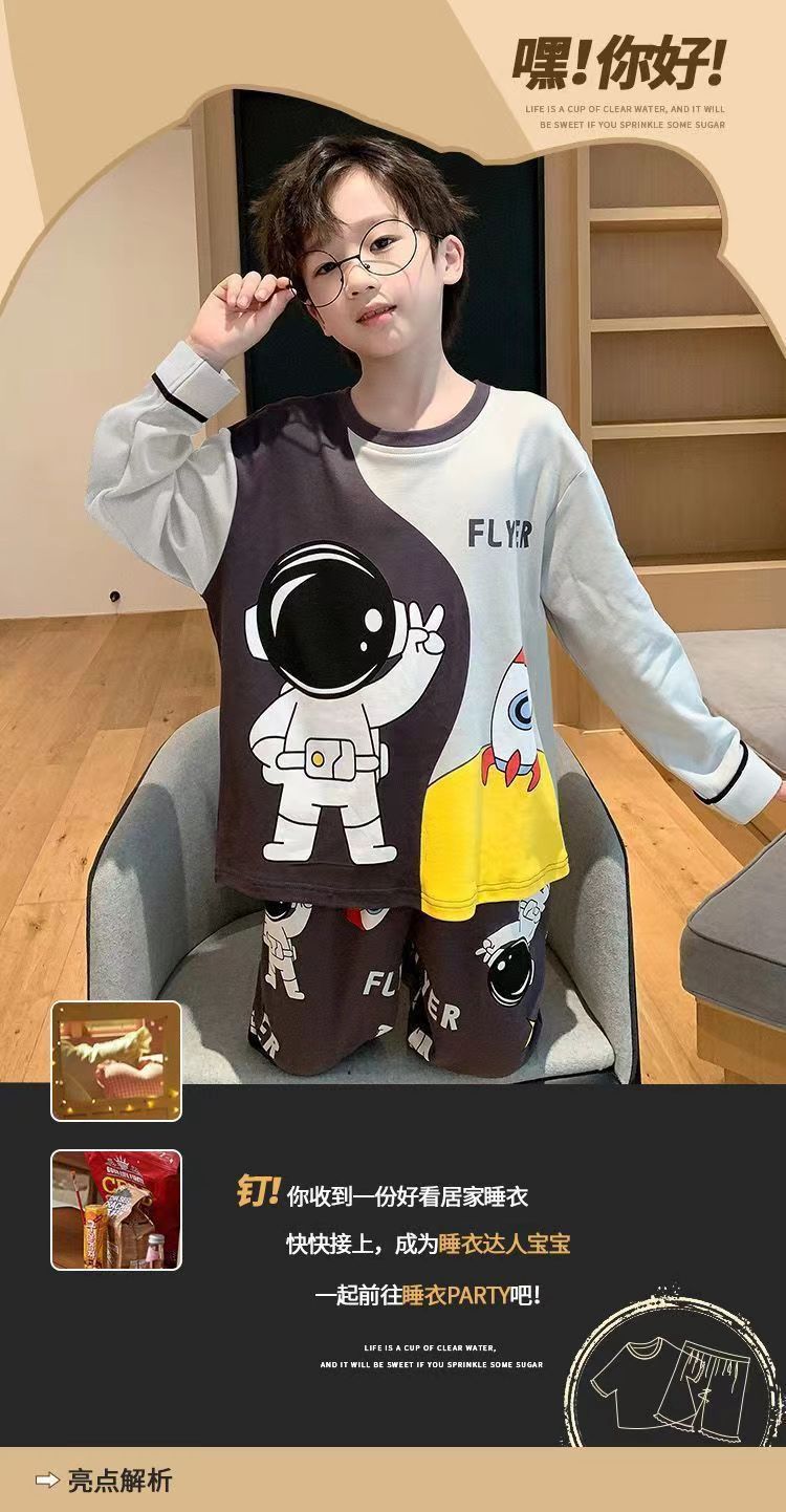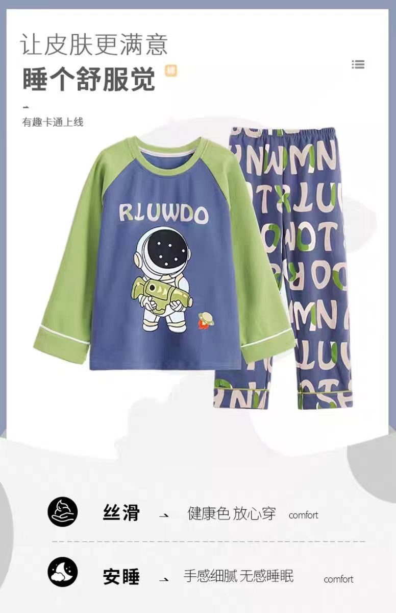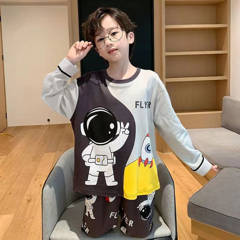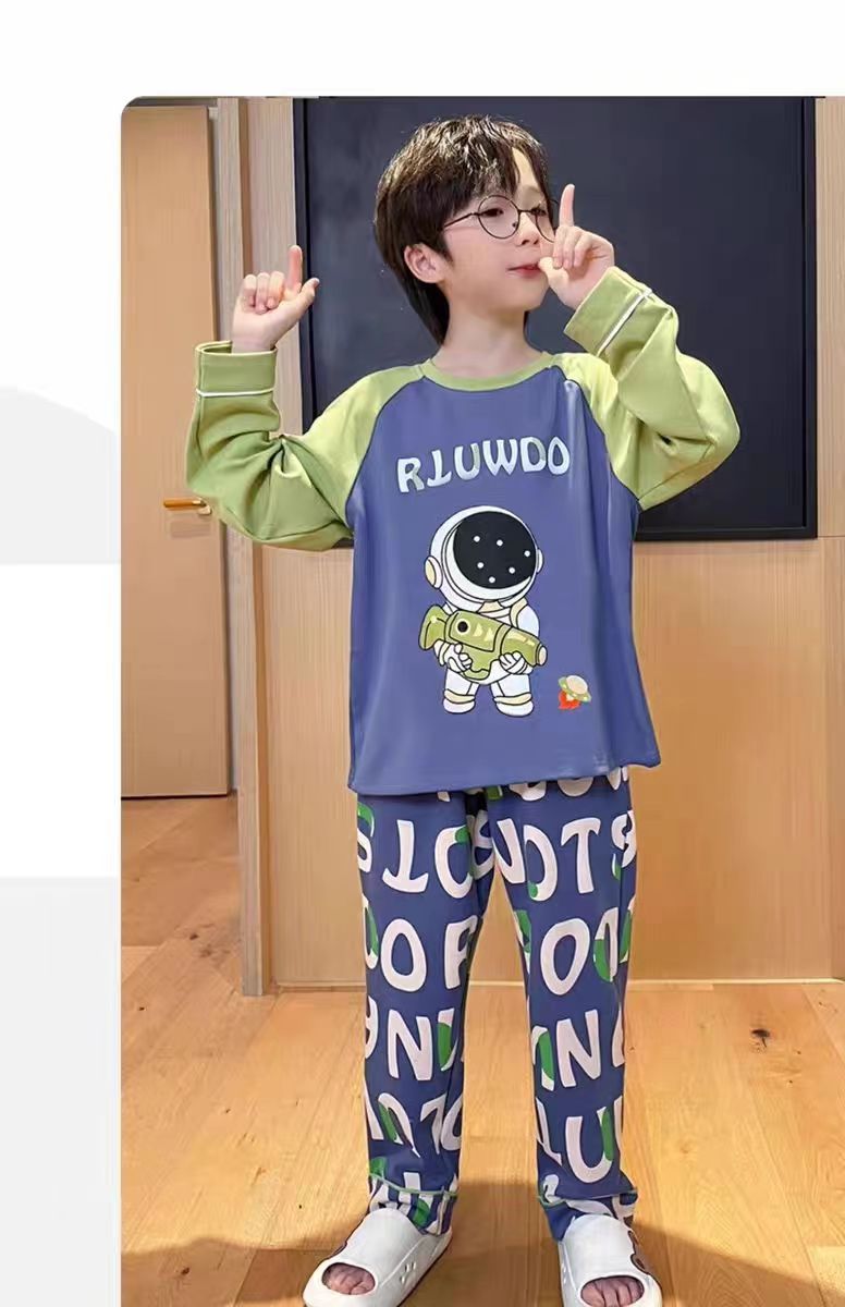어린이 잠옷 봄과 여름 2024 새 소년 봄과 가을 세트 긴팔 바지 어린이 잠옷 소년 십대스토어 가기