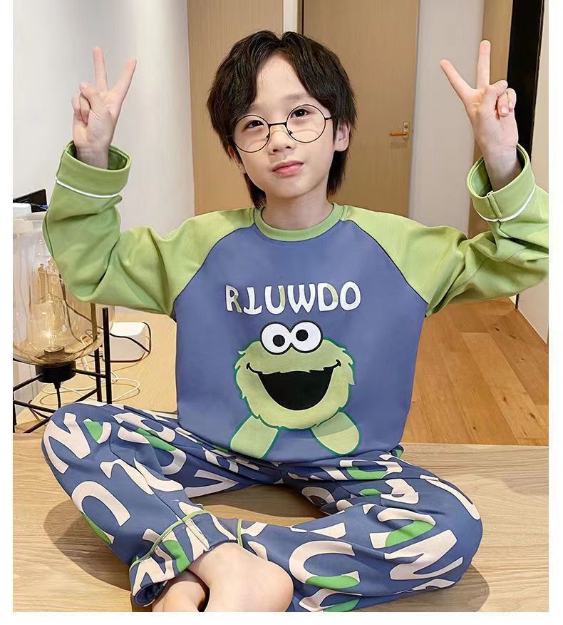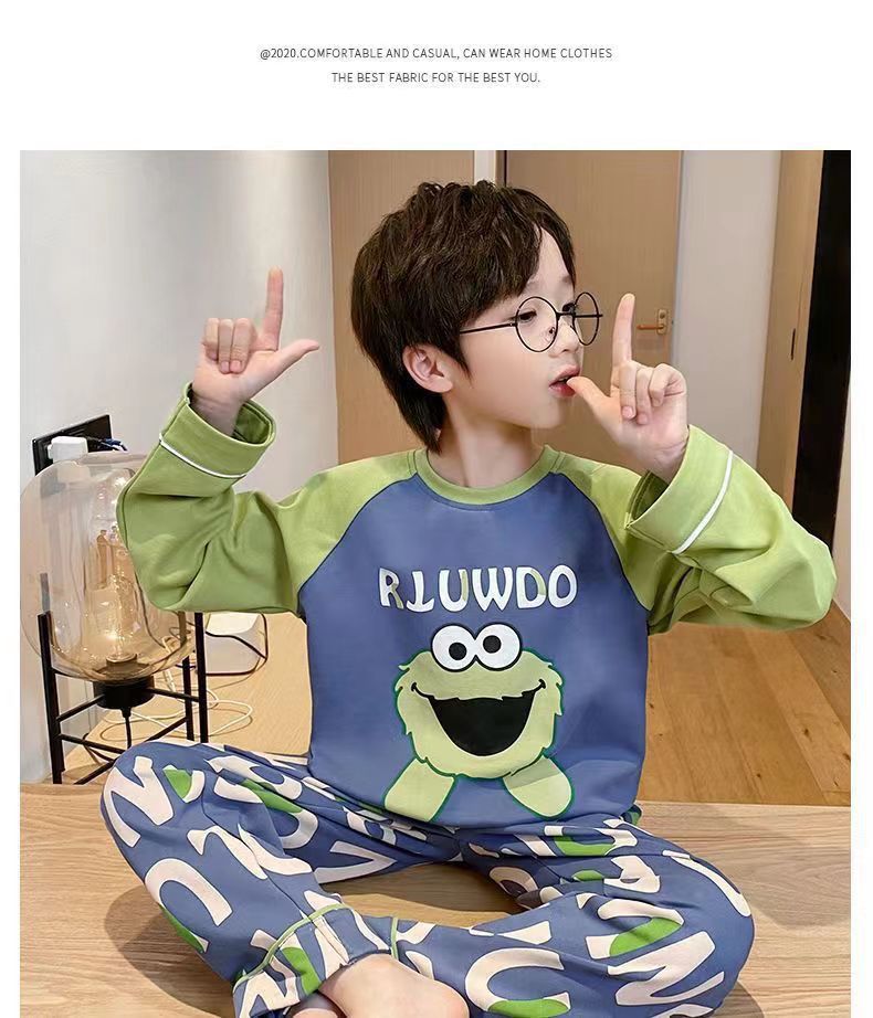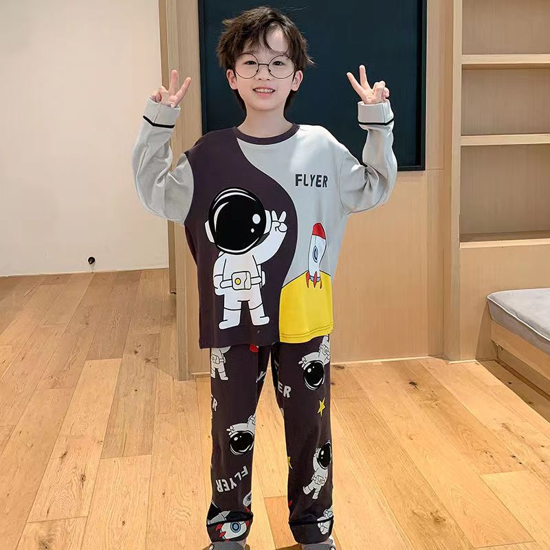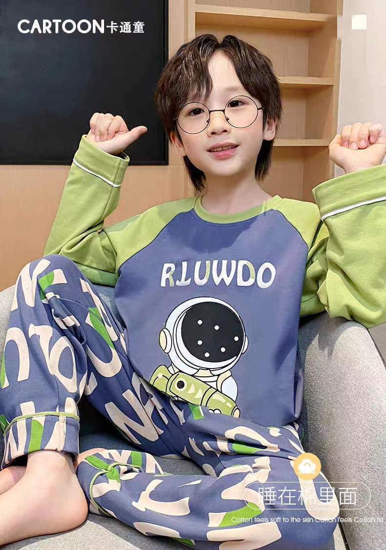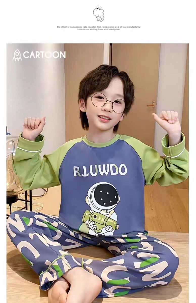어린이 잠옷 봄과 여름 2024 새 소년 봄과 가을 세트 긴팔 바지 어린이 잠옷 소년 십대스토어 가기