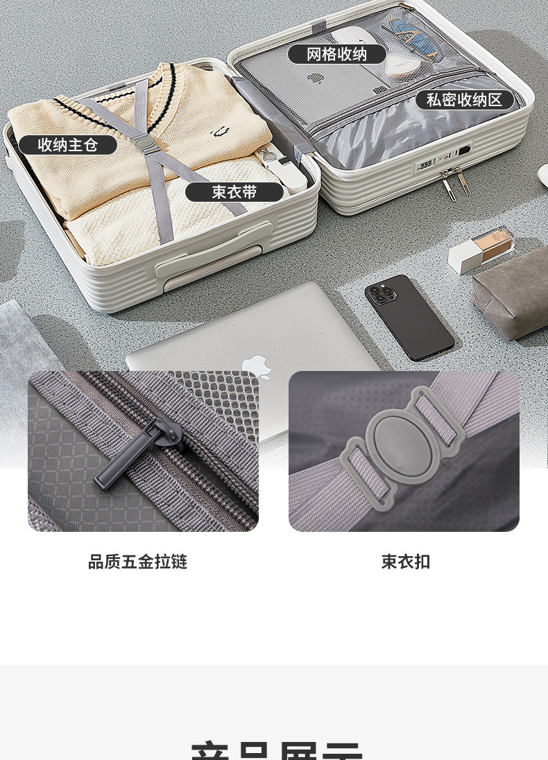 새로운 전면 오픈 커버 탑승 수하물 케이스 여성용 고급 18 인치 여행 다기능 트롤리 케이스 남성 비밀번호 수하물스토어 가기
