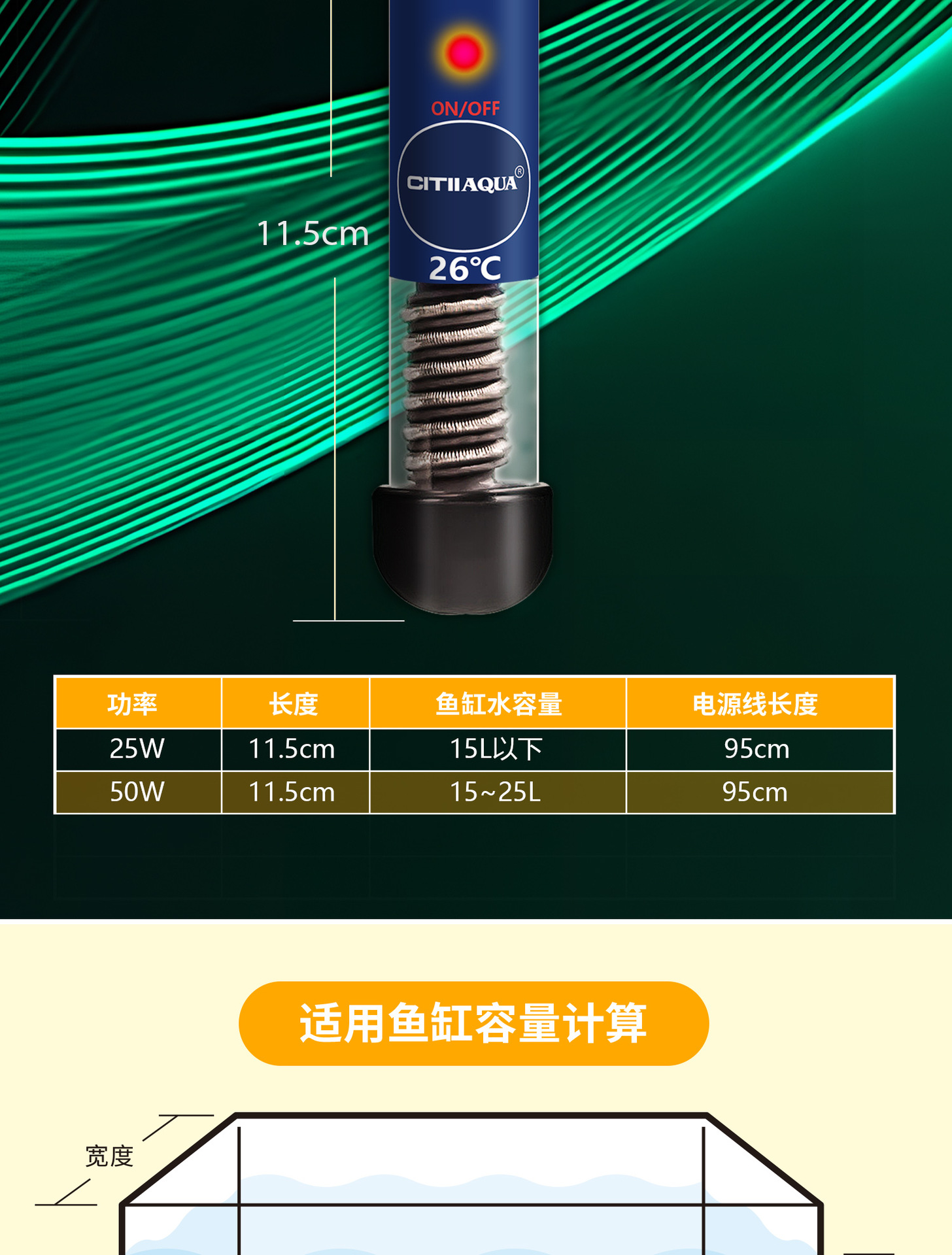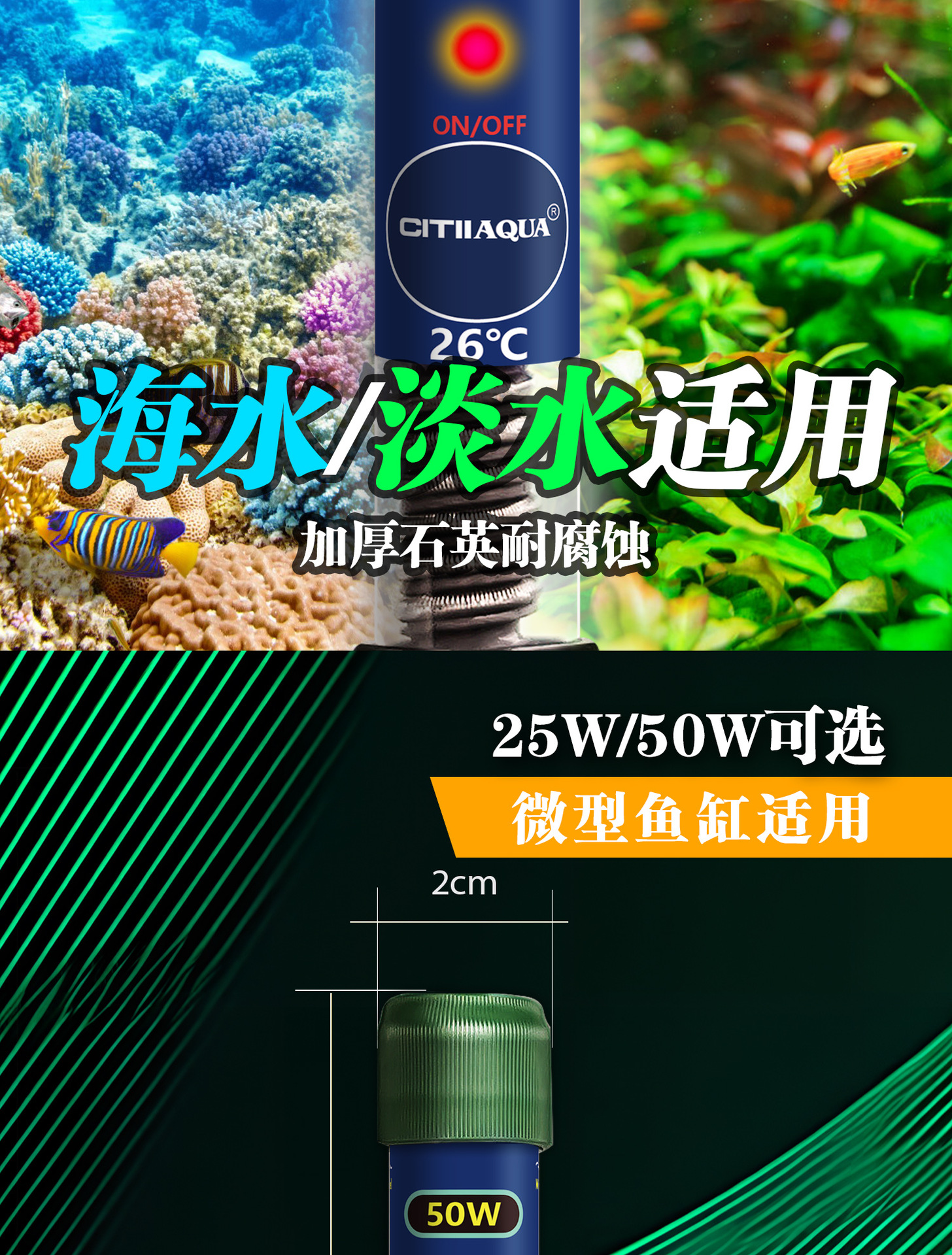 CITIIAQUA 어항 가열봉 자동 일정한 온도 주파수 변환 작은 미니 거북 온난화 막대 열대어 빛 바다스토어 가기