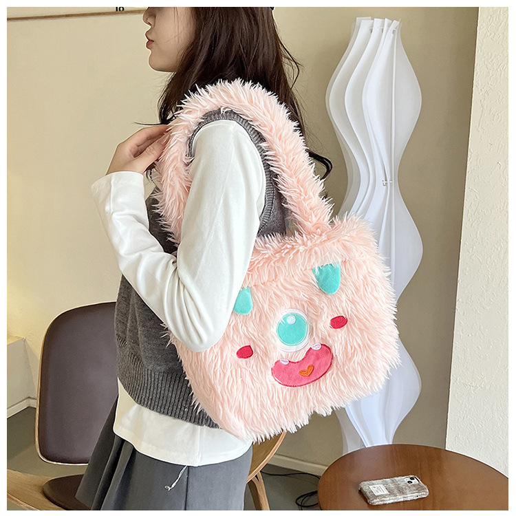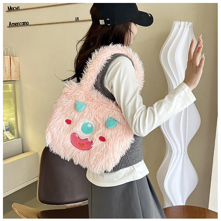 귀여운 작은 괴물 만화 봉제 가방 2024 여성 통근 겨드랑이 작은 사각형 가방 대용량 토트 핸드백