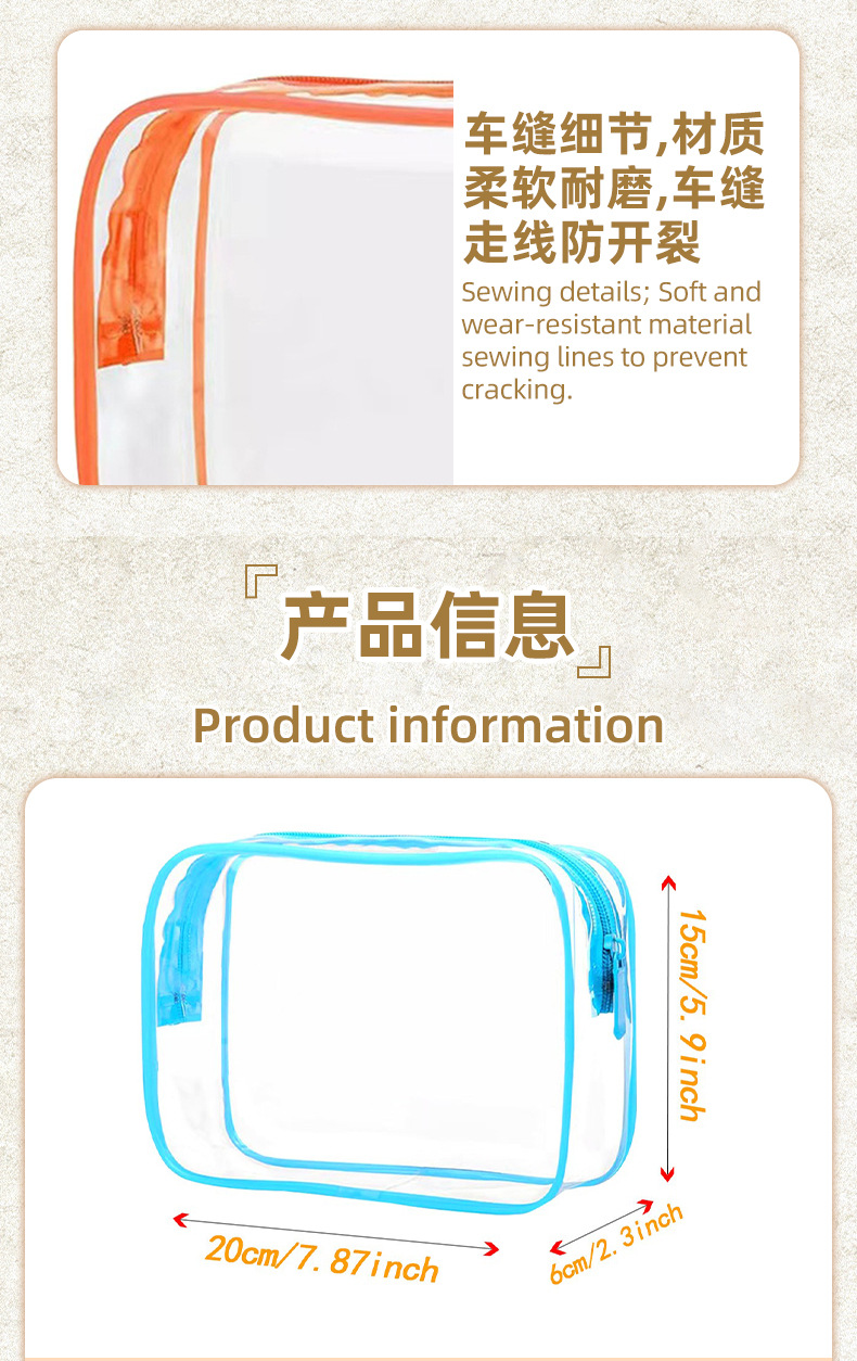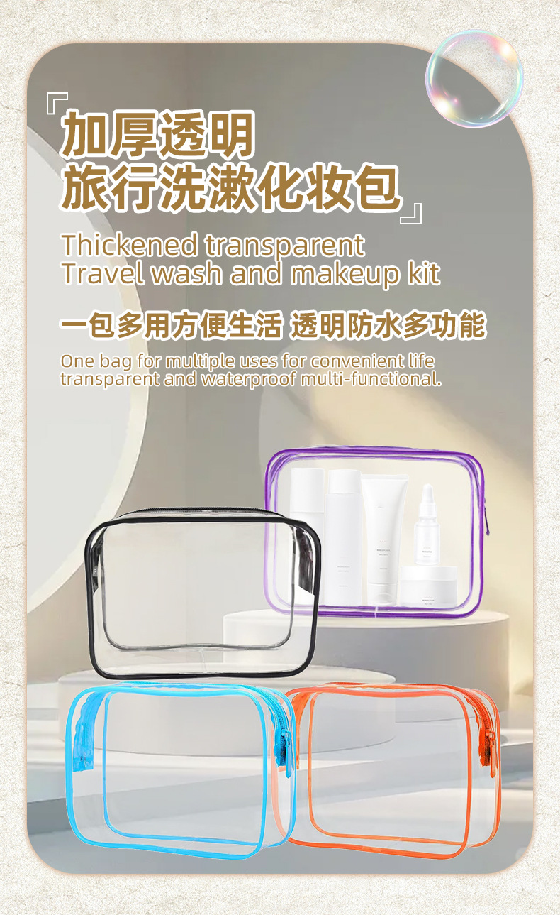 2025 새로운 두꺼운 투명 화장품 가방 비행기 여행 저장 가방 PVC 투명 저장 가방 스낵 저장 가방