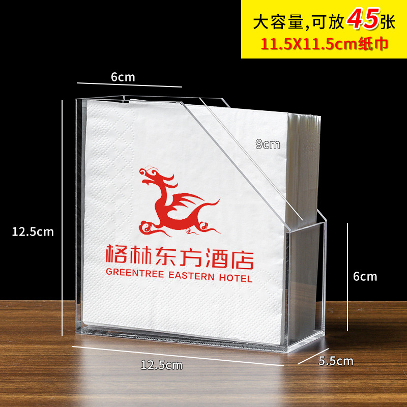 유기농 유리 유럽 스타일의 창조적 인 아크릴 냅킨 종이 상자 호텔 용품 서양 레스토랑 티슈 박스 인쇄 가능한 로고