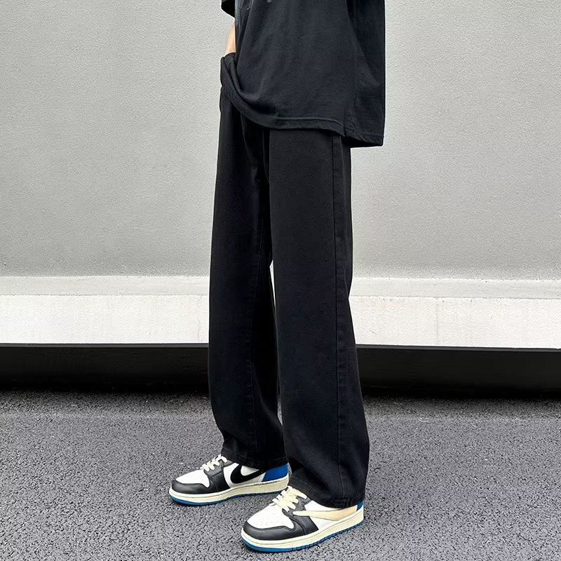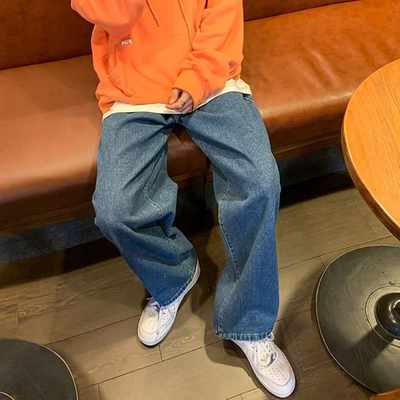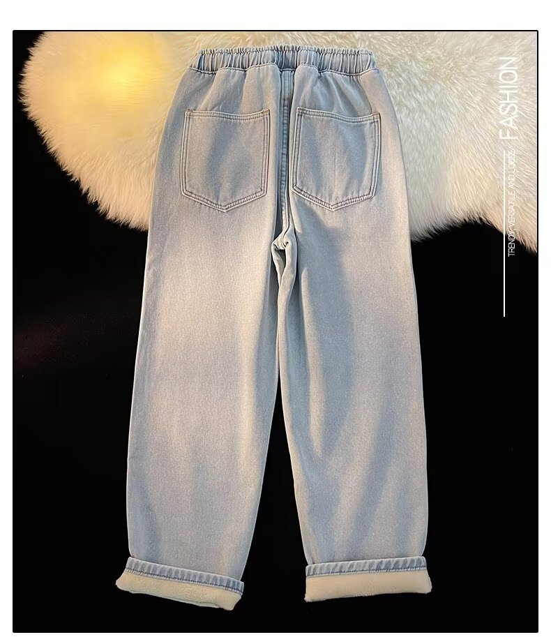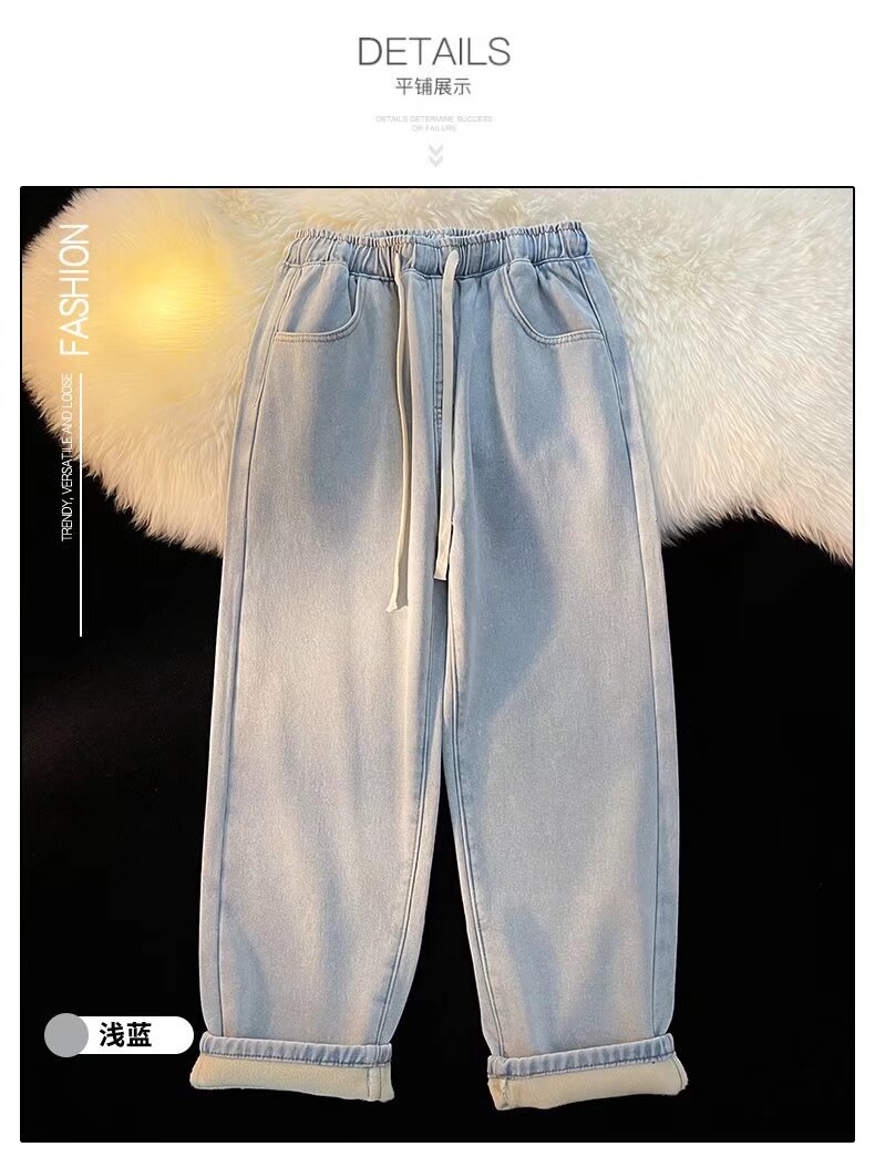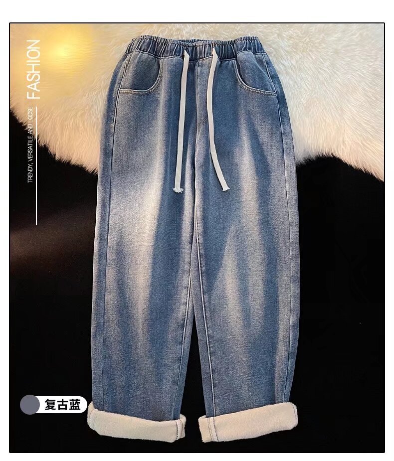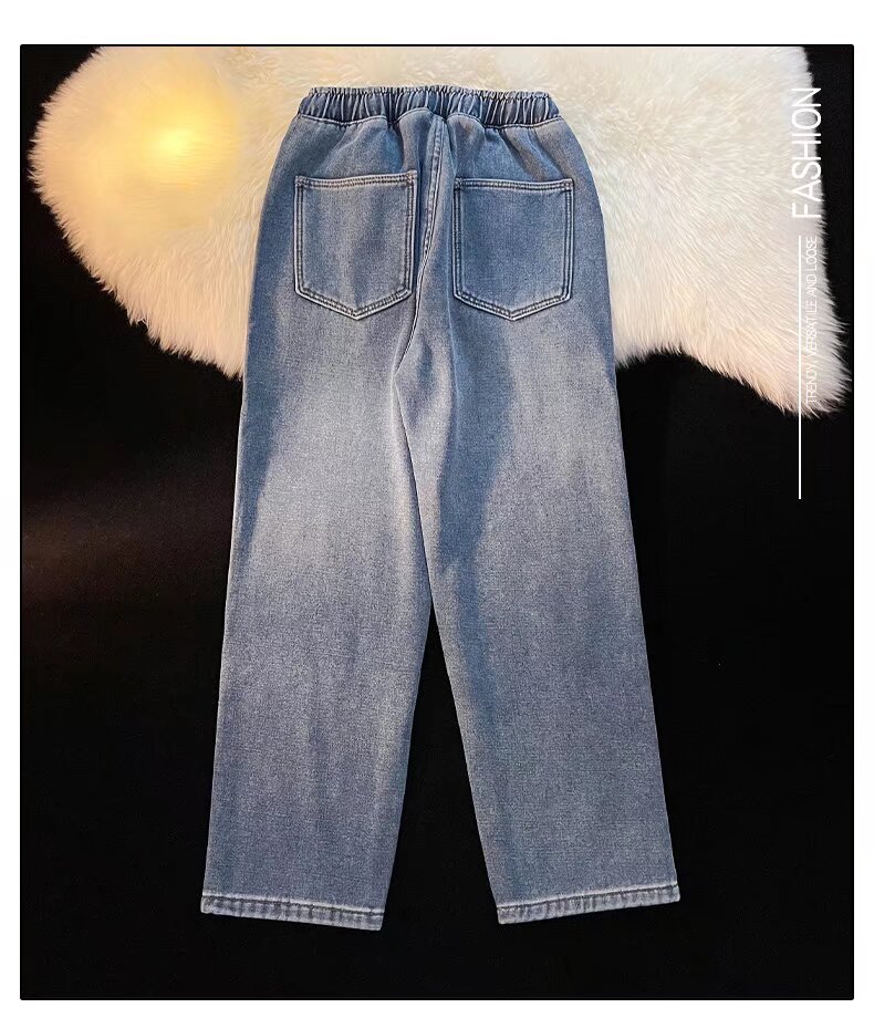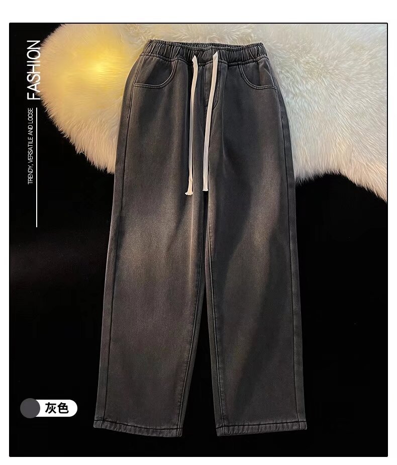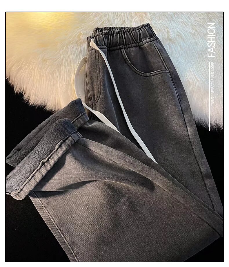 기모 두꺼운 청바지 남성 시즌 탄성 허리 직선 넓은 다리 작은 느슨한 가을과 겨울 학생 따뜻한 바지 패션스토어 가기
