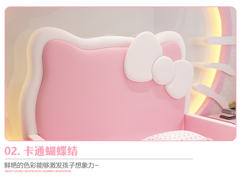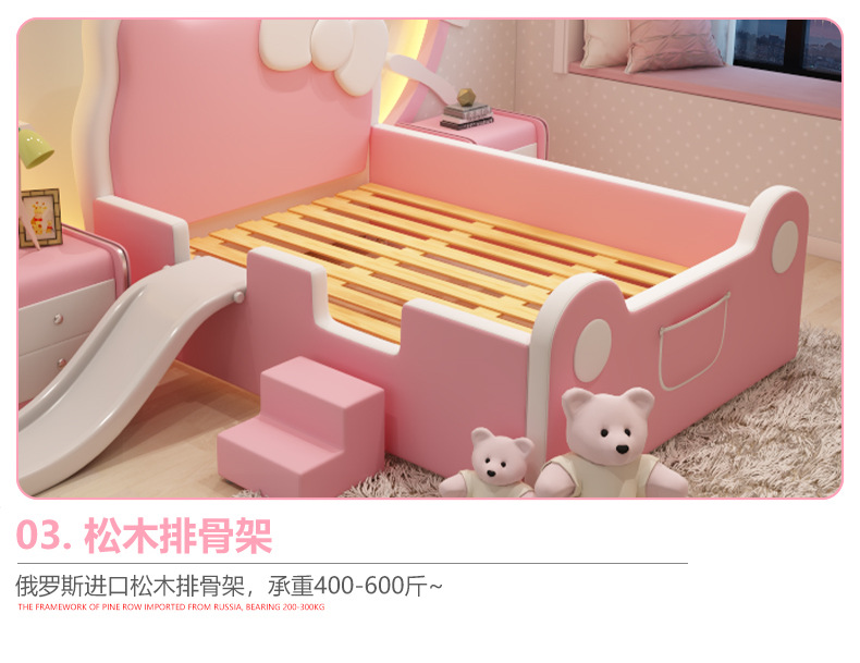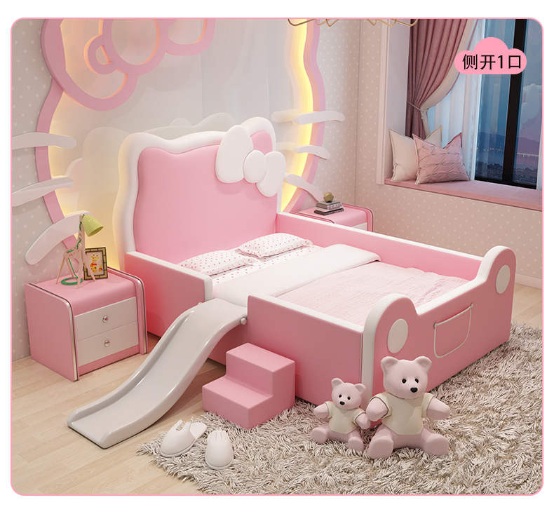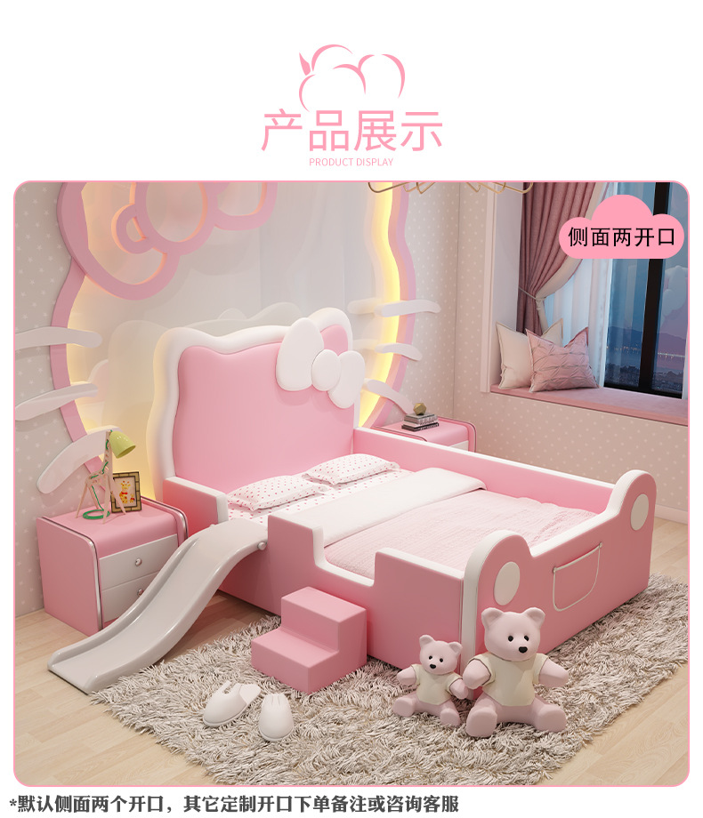 어린이 침대 소녀 핑크 공주 침대 단단한 나무 가드 레일 슬라이드 침실 싱글 침대 헬로 kt 소녀 침대 새로운 스타일