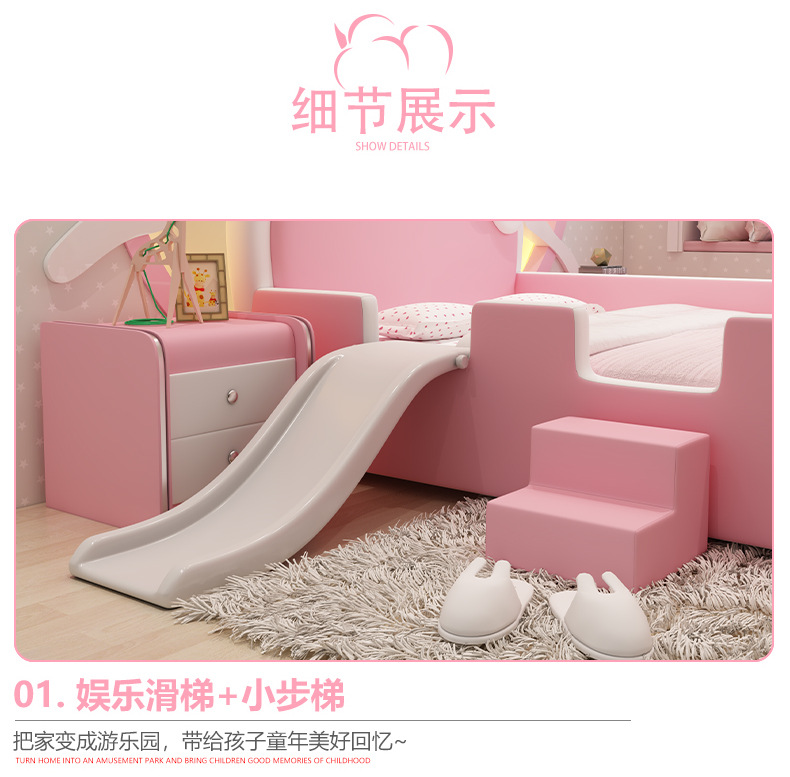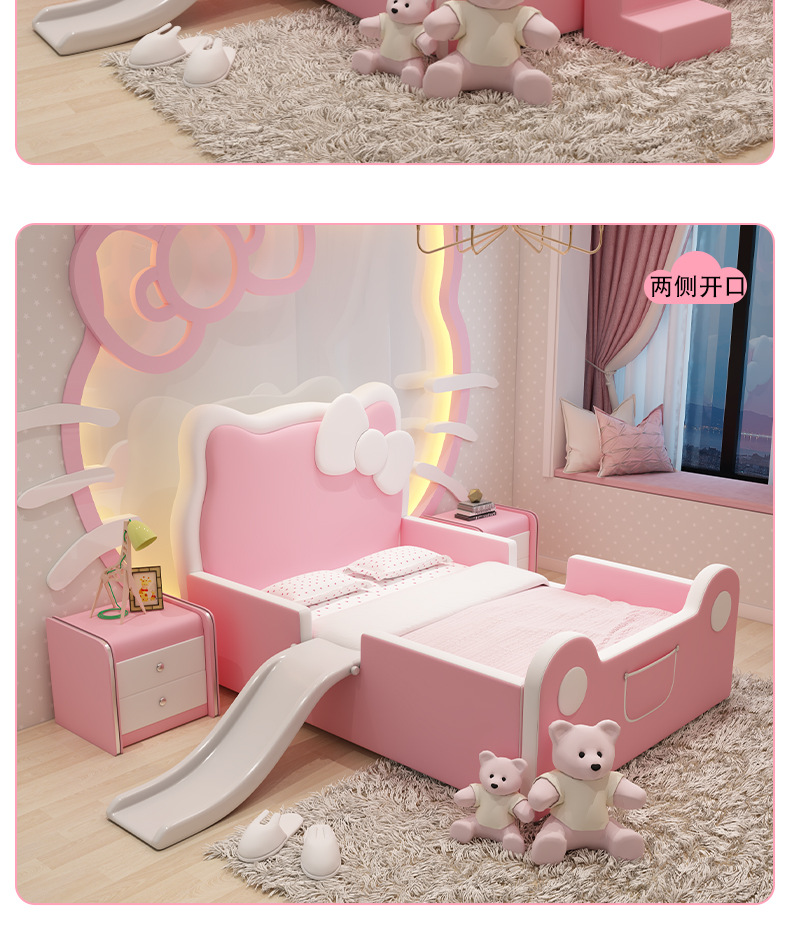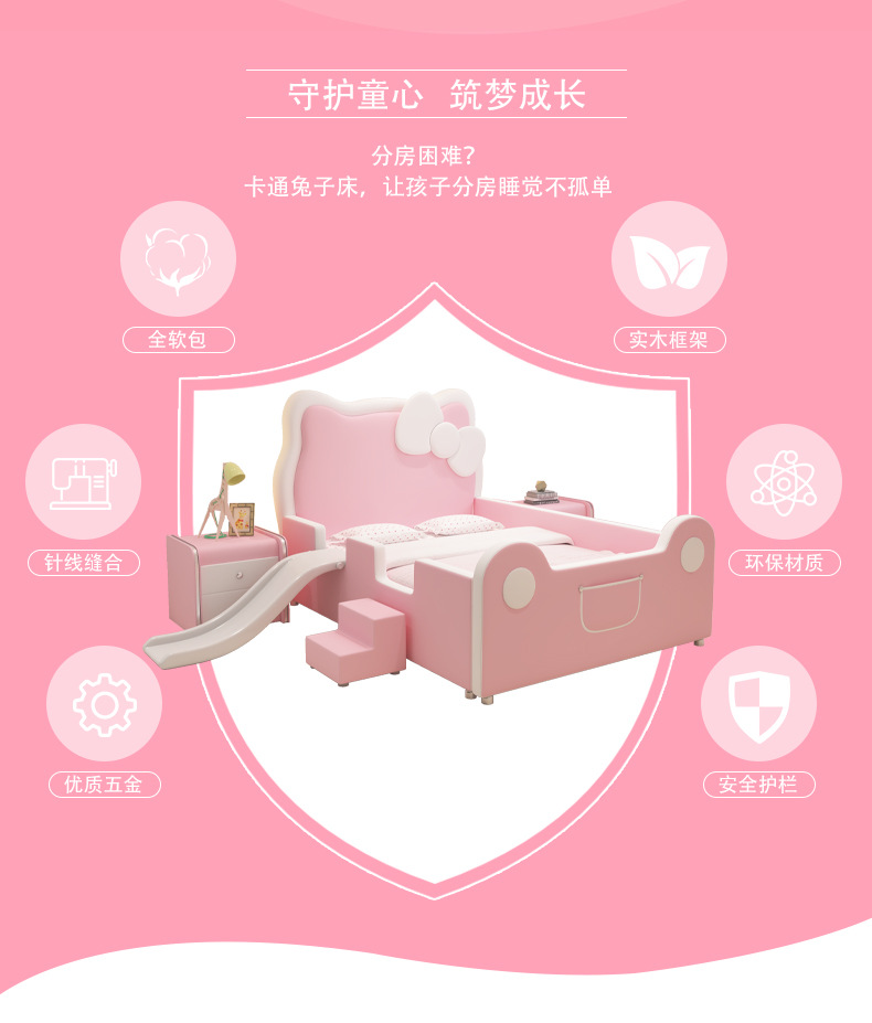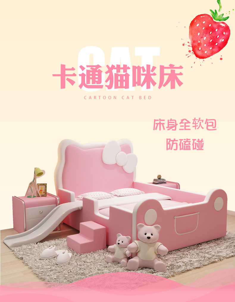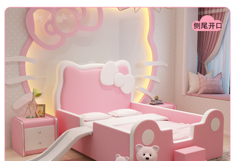 어린이 침대 소녀 핑크 공주 침대 단단한 나무 가드 레일 슬라이드 침실 싱글 침대 헬로 kt 소녀 침대 새로운 스타일스토어 가기