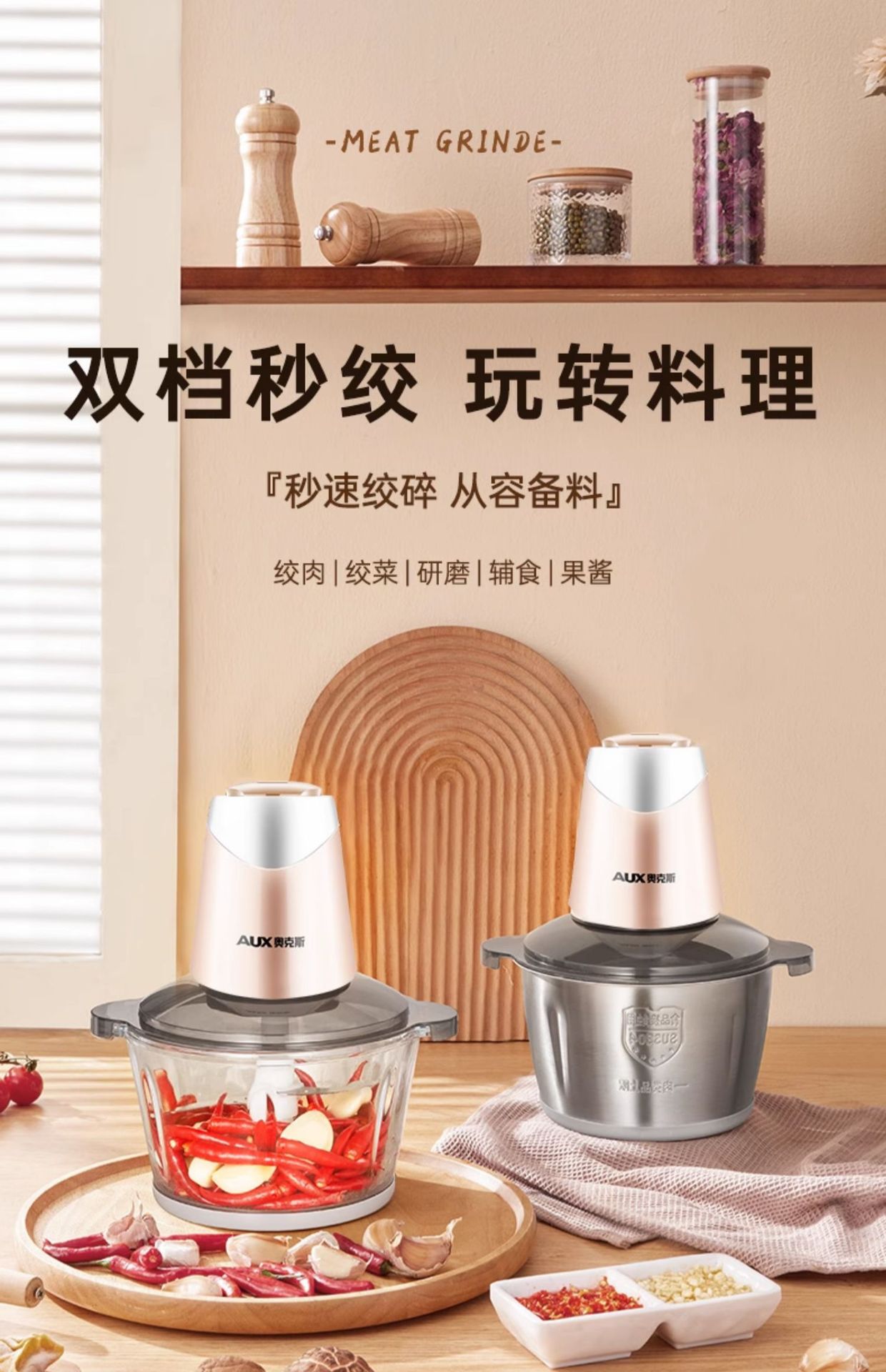 오크 고기 분쇄기 가정용 전기 작은 스테인레스 스틸 교반 및 끊는 다기능 조미료 마늘 페이스트 스터핑 머신