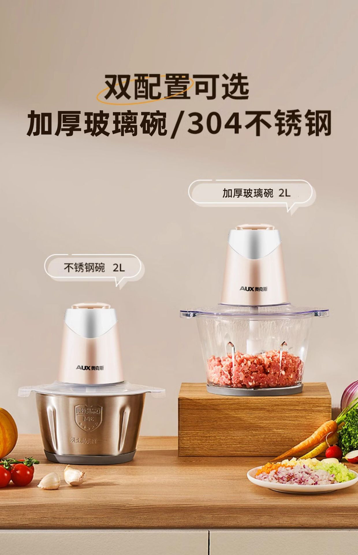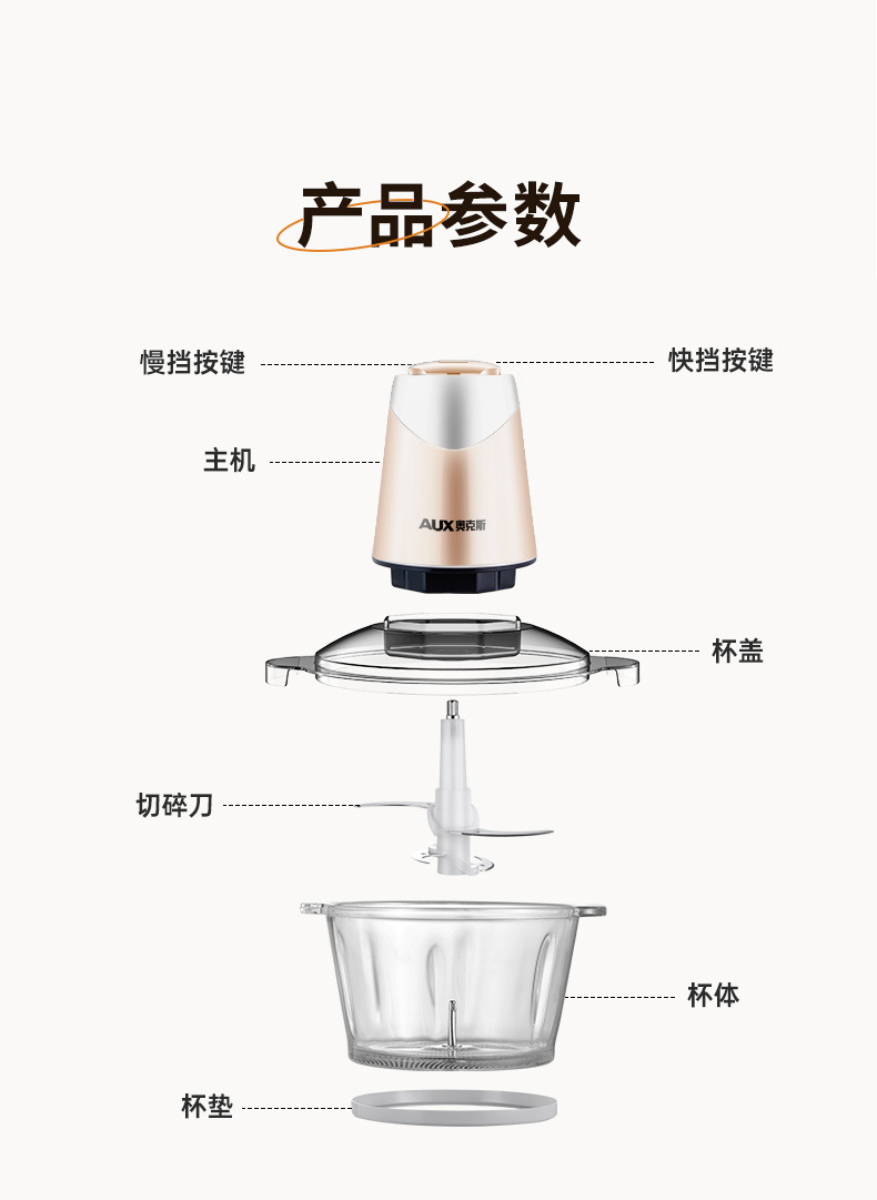 • 오크 고기 분쇄기 유리 그릇 더블 칼