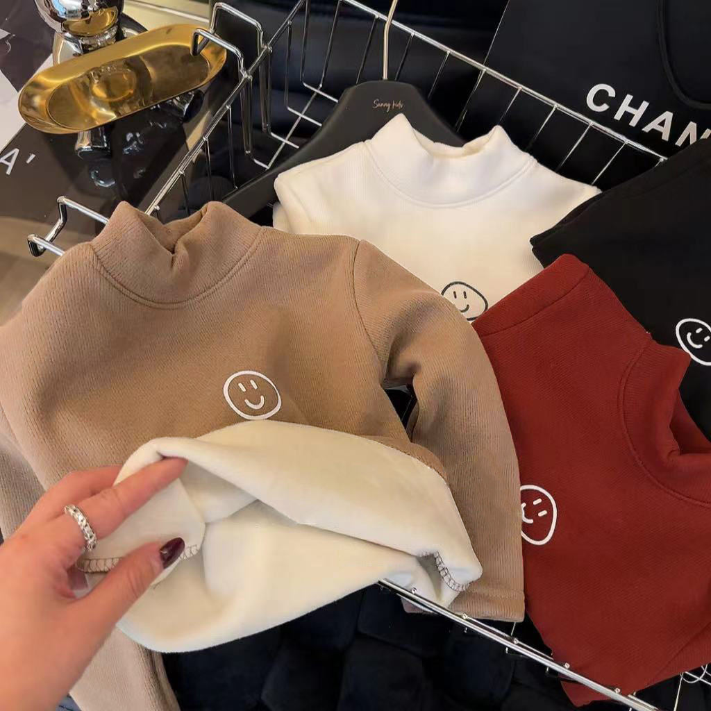어린이 기모 바닥 스웨터 가을과 겨울 새로운 소년 소녀 반 터틀넥 원피스 벨벳 따뜻한 내부 탑
