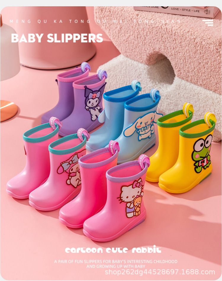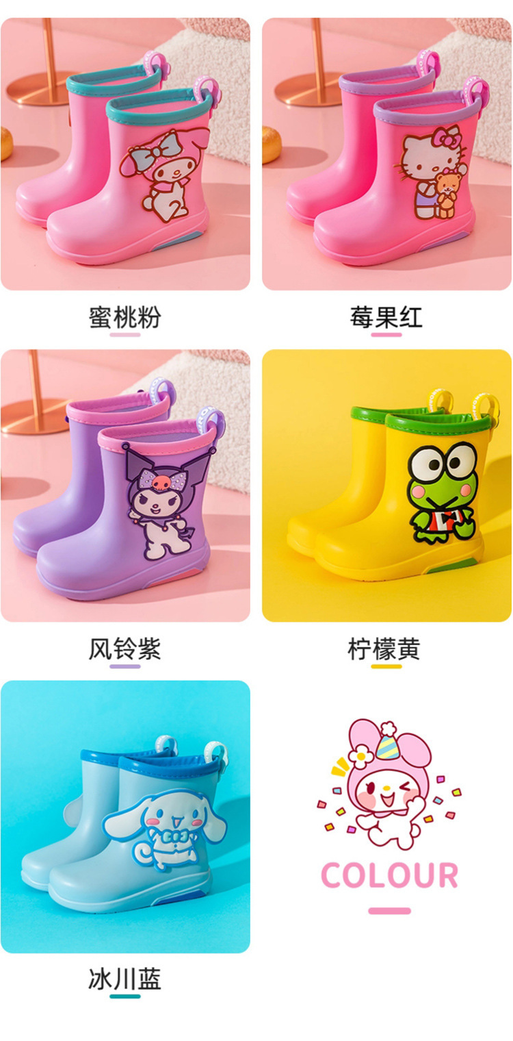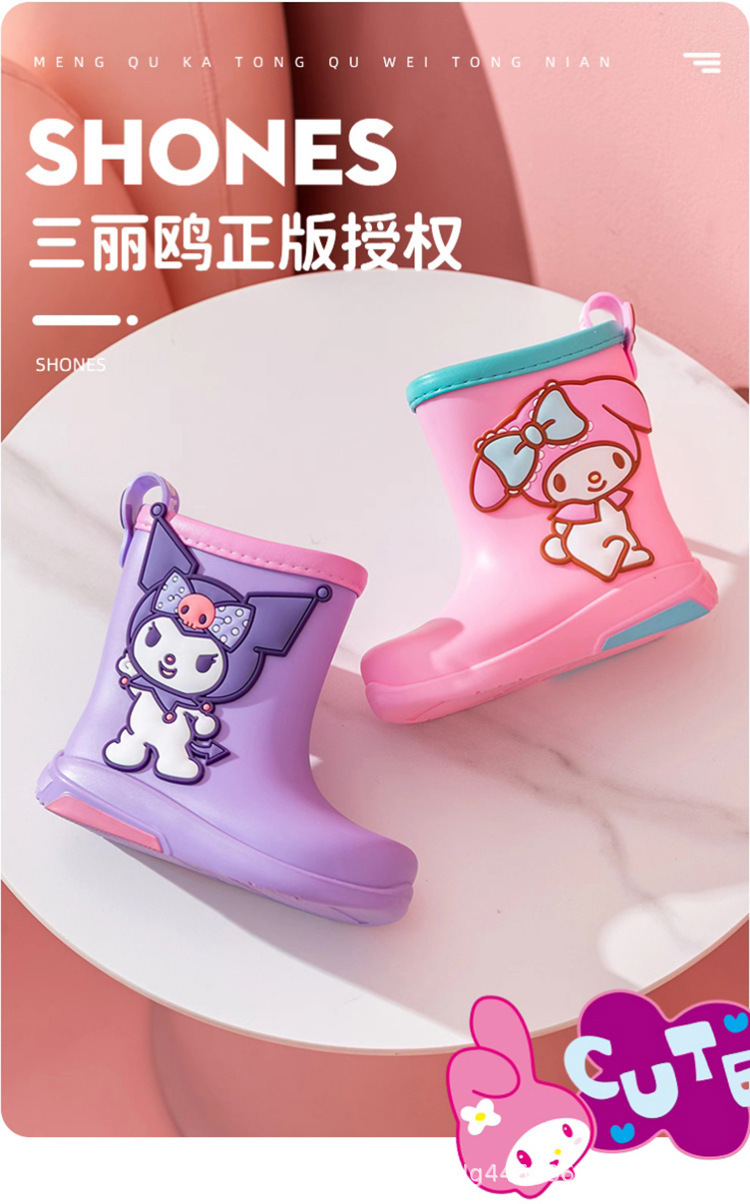 산리오 어린이 레인슈즈 만화 레인부츠 쿠로미 헬로키티 유치원 미끄럼 방지 워터슈즈 야외 도매 PVC스토어 가기