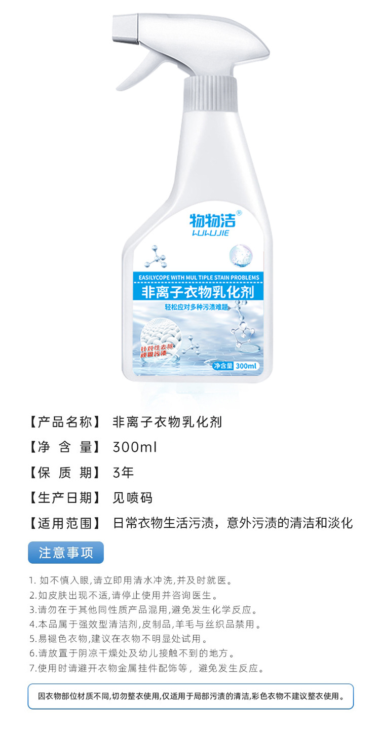 비 이온 의류 유화제 300ml 얼룩 제거 오일 얼룩 황변 침투 스프레이 의류 청소기 도매스토어 가기