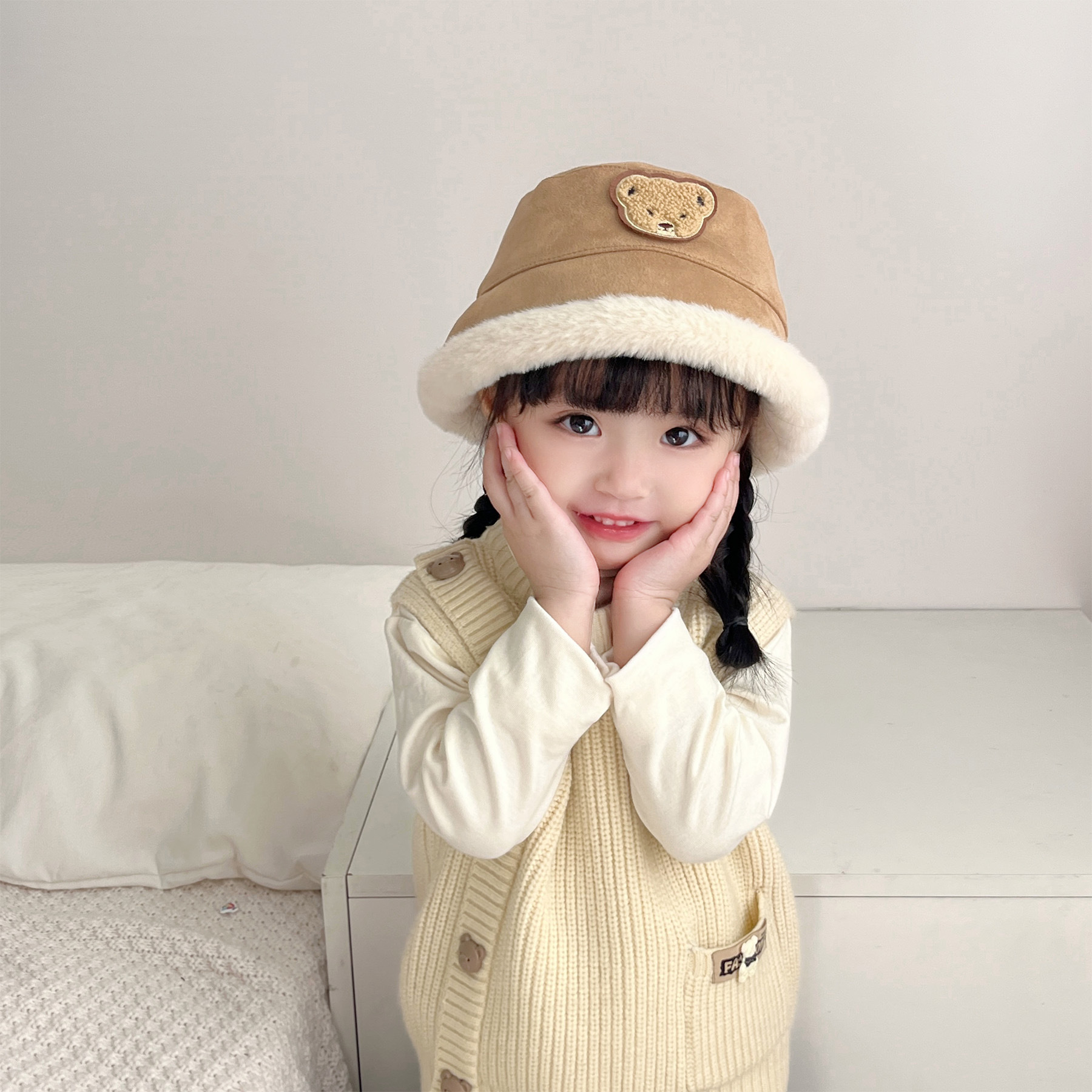 아기 모자 가을과 겨울 곰 소년 소녀 어부 모자 어린이 두꺼운 봉제 분지 모자 유아 따뜻한 모자스토어 가기
