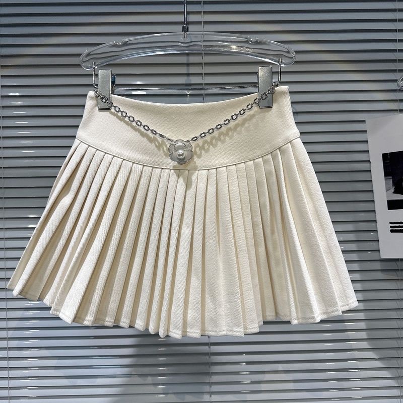 여자 인터넷 연예인 같은 스타일 2025 봄과 가을 새로운 스타일 작은 향기로운 동백 허리 체인 탄성 허리 주름 A 라인 스커트스토어 가기