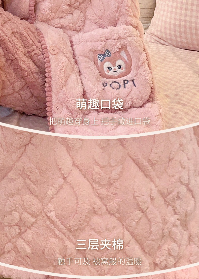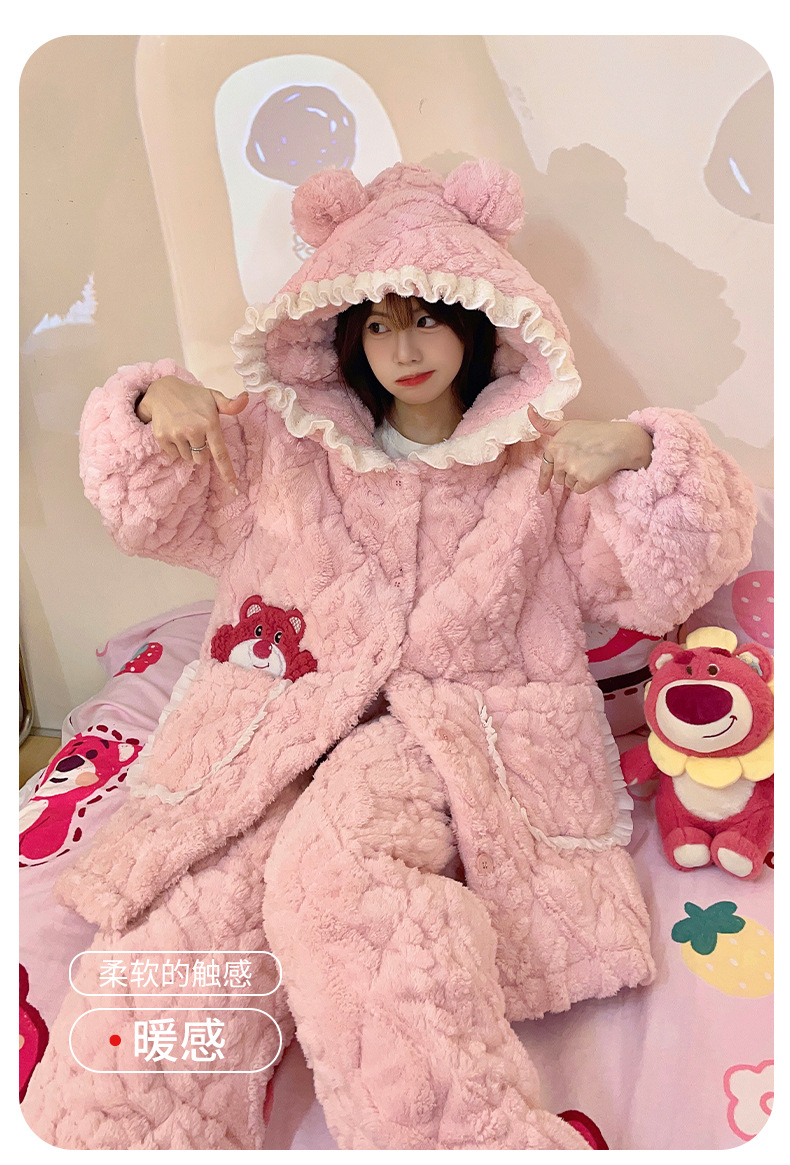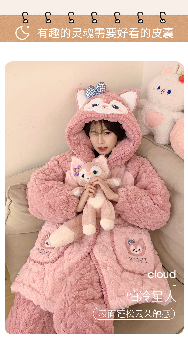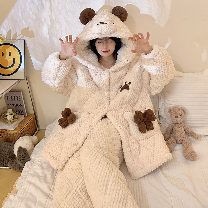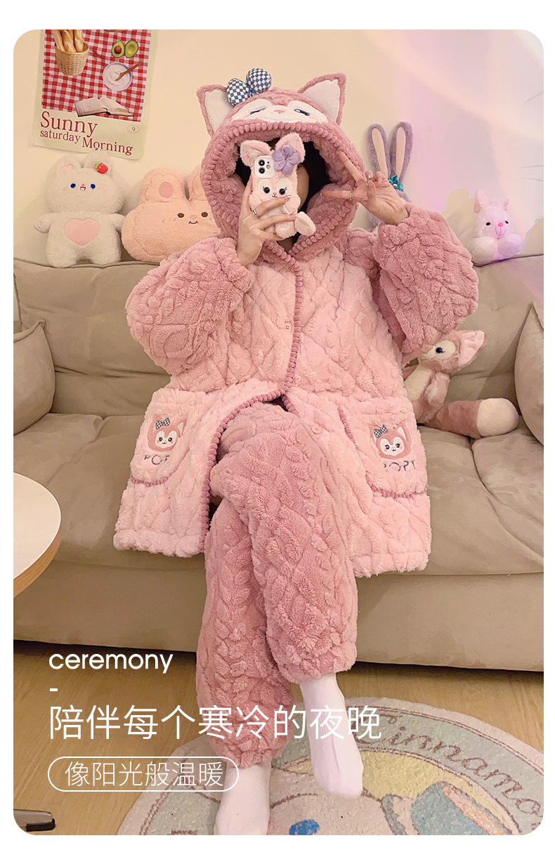 겨울 산호 양털 3 층 퀼트 파자마 여성 기모 두꺼운 만화 후드 소녀의 18 세 고등학생 가정 옷스토어 가기