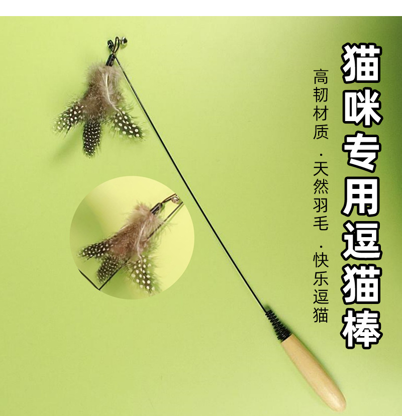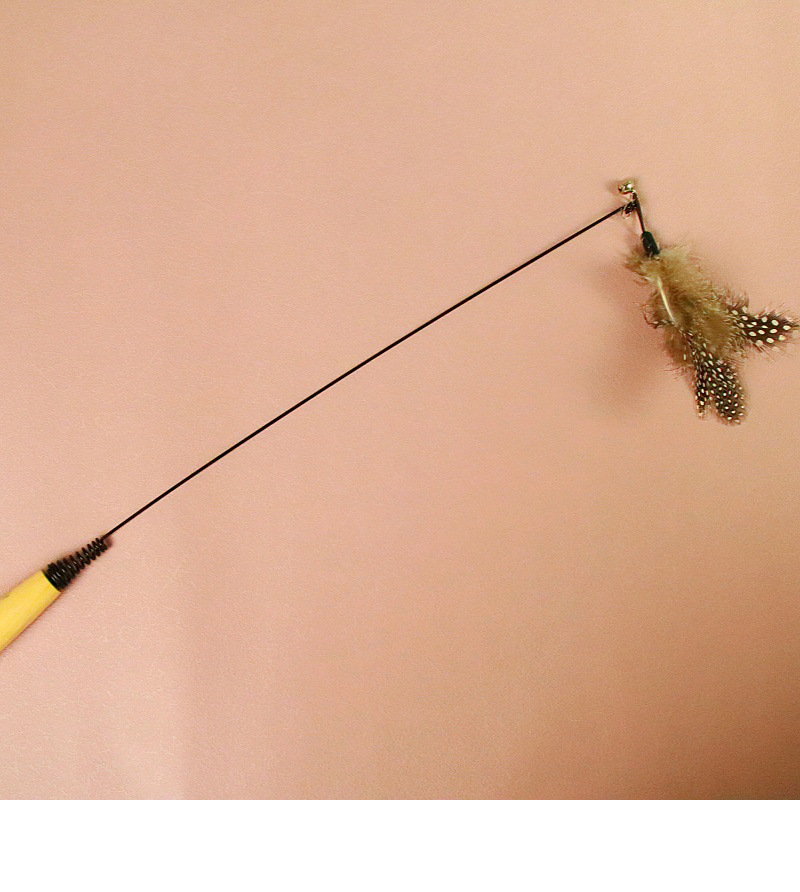 재미있는 고양이 장난감 제조 업체 도매 단단한 나무 손잡이 강철 와이어 봄 고양이 레버 교체 가능한 깃털 벨 소리 고양이 스틱스토어 가기