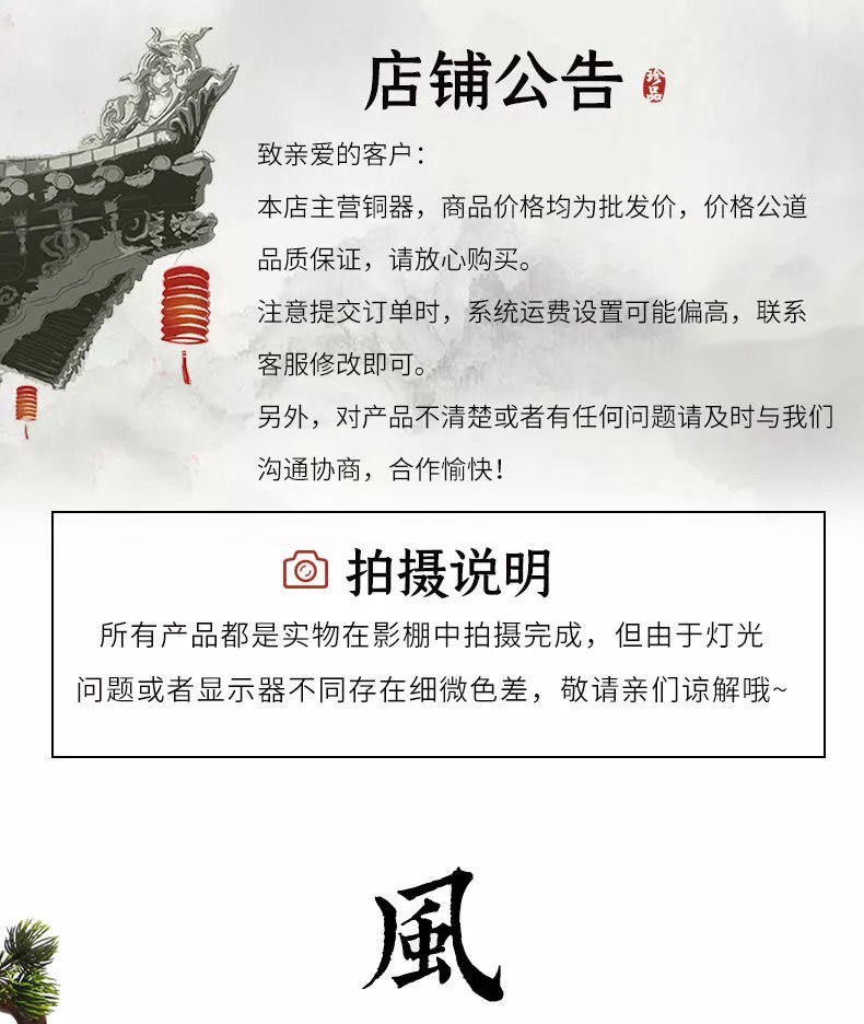 도매 자체 생산 및 판매 벨, 구리 벨, 풍경, 가정용 장식품, 사원 팔각형 벨 액세서리, 천장 빔 메이핑