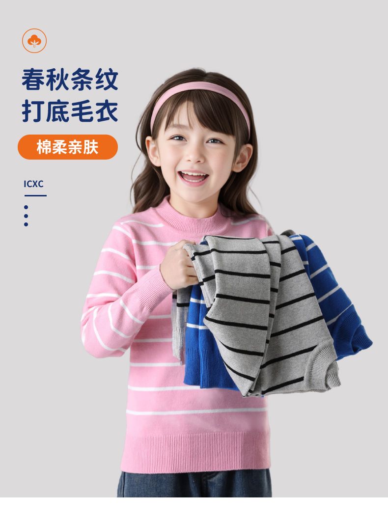 어린이 바닥 스웨터 소년 소녀 스트라이프 스웨터 코튼 싱글 피스 얇은 미디어와 큰 어린이 내복 봄과 가을스토어 가기