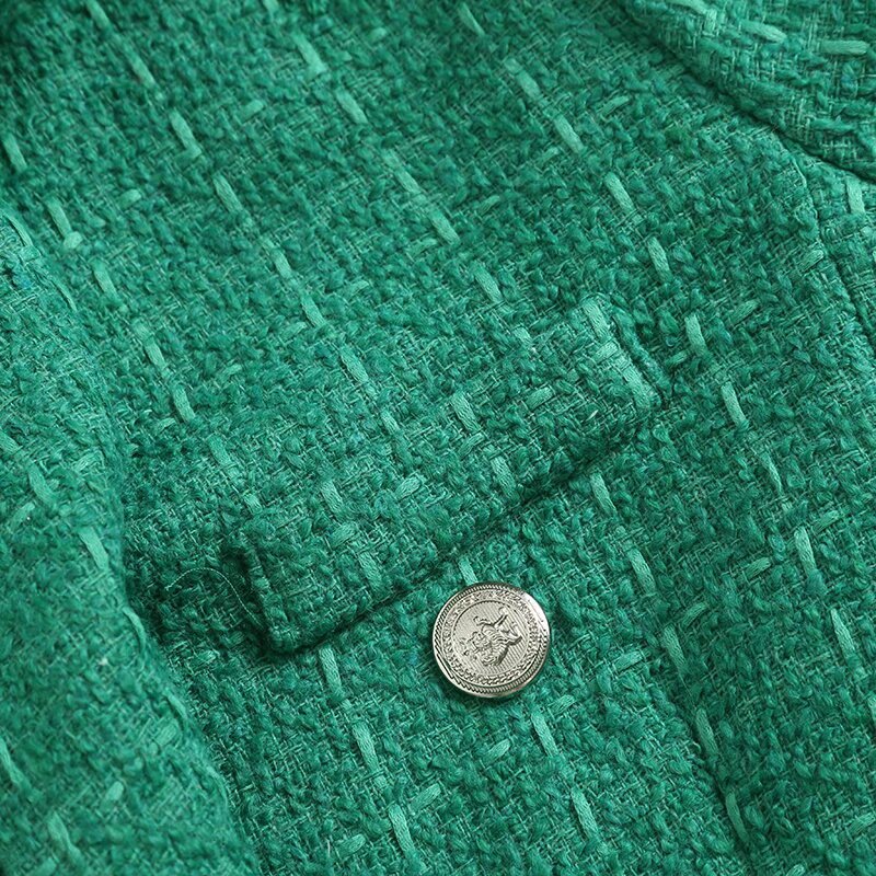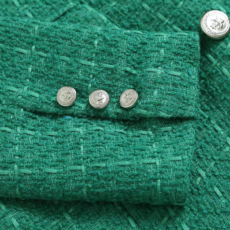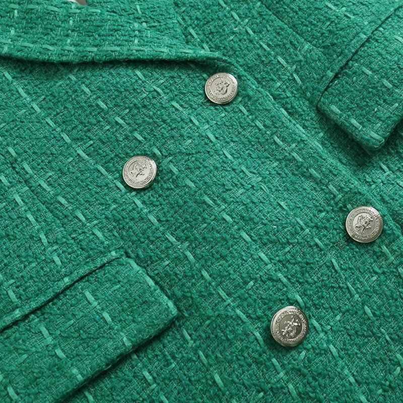 유럽과 미국 여성의 봄과 가을 패션 더블 브레스트 트위드 체크 무늬 세트 재킷 빈티지 긴팔 포켓 세트 재킷스토어 가기