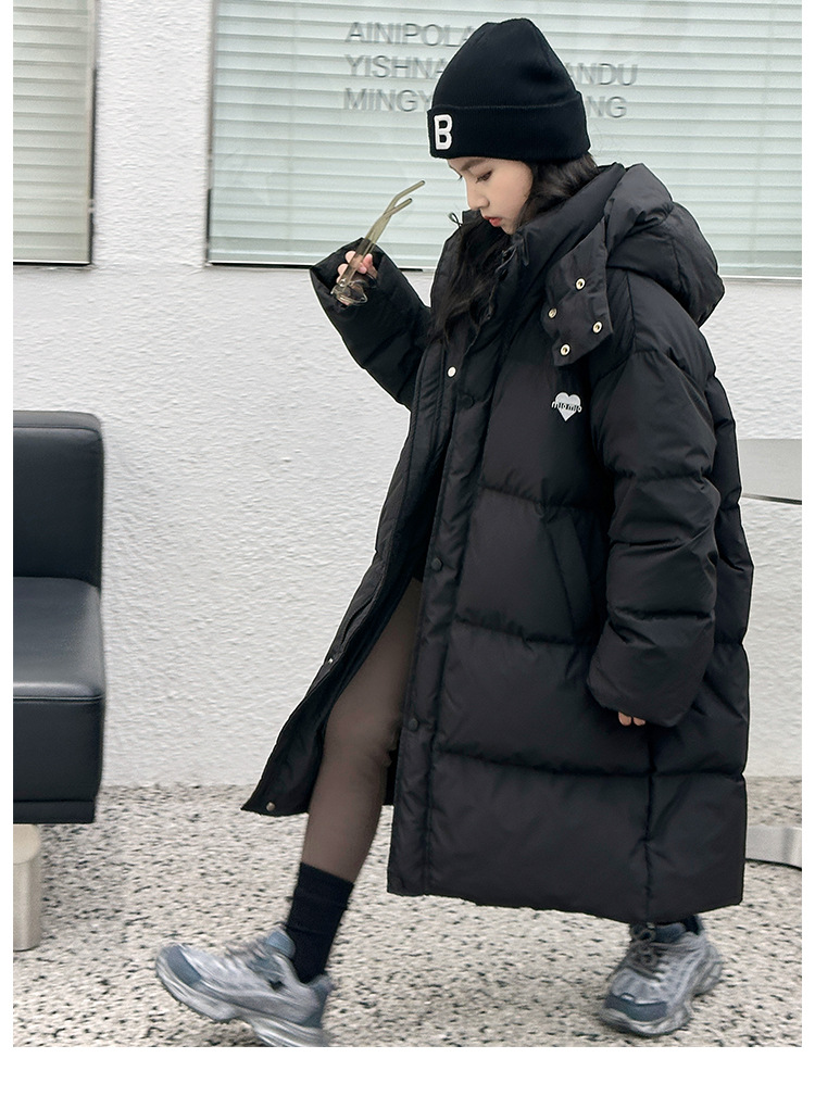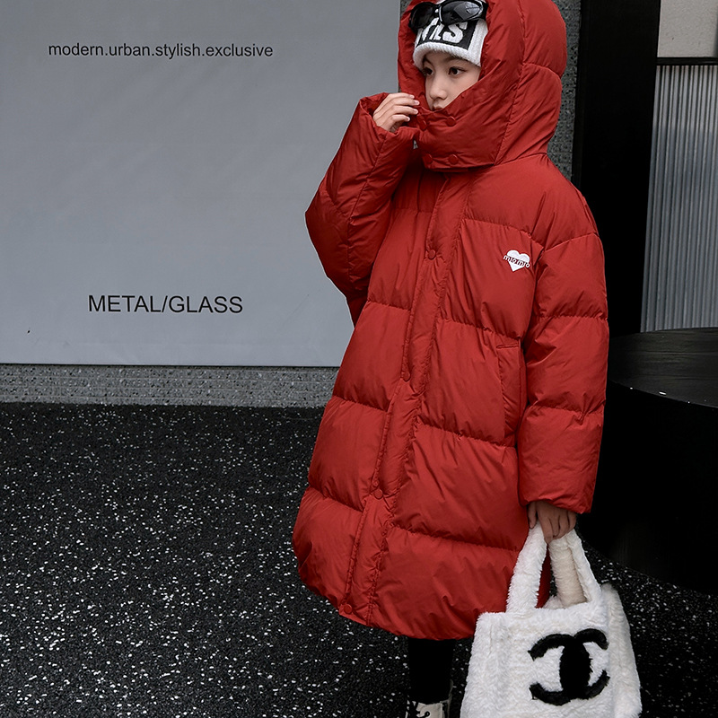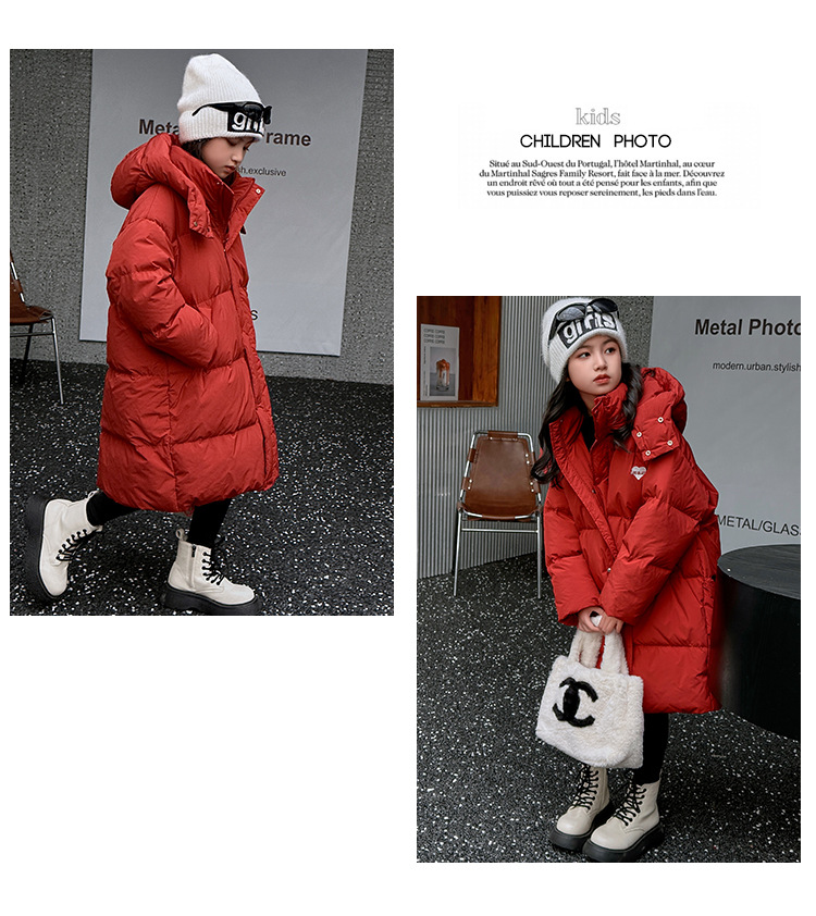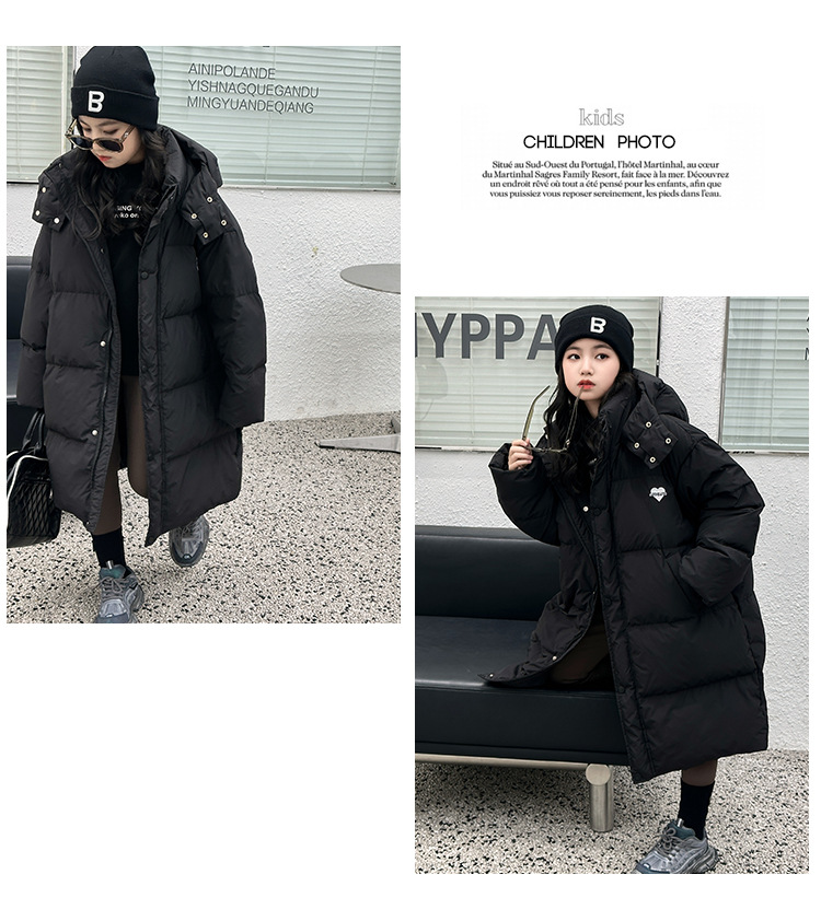 소녀 다운 재킷 2023 새로운 서양식 무릎 중간 길이 큰 어린이 겨울 아동복 겨울 코트 블랙스토어 가기