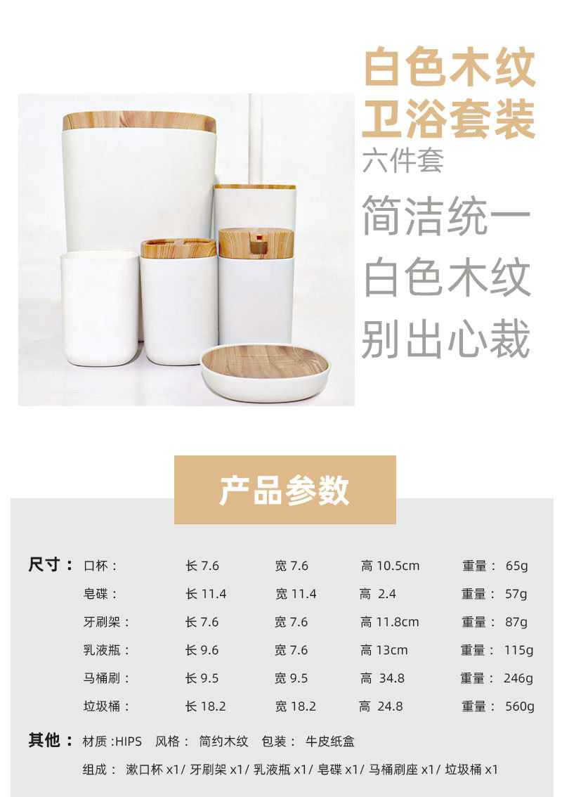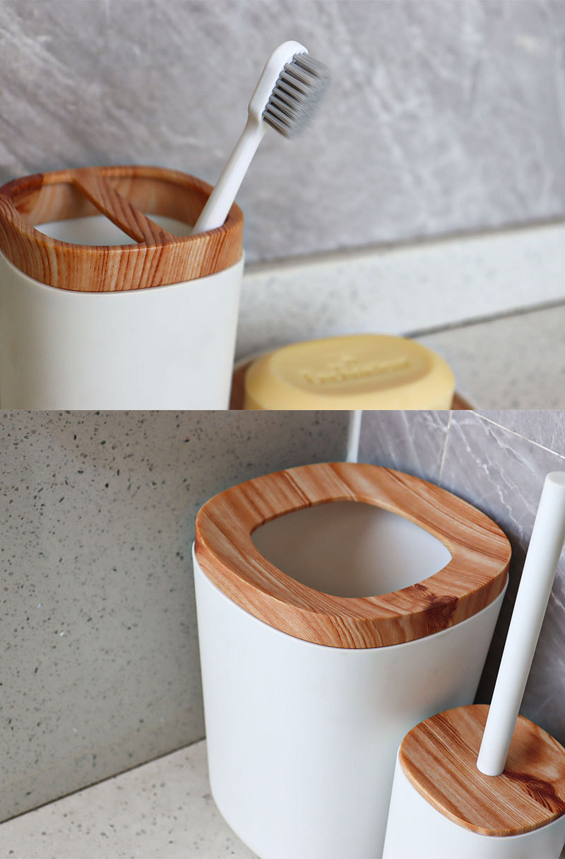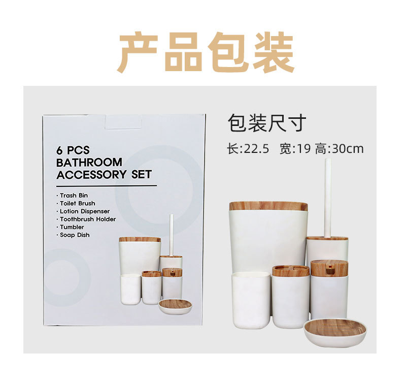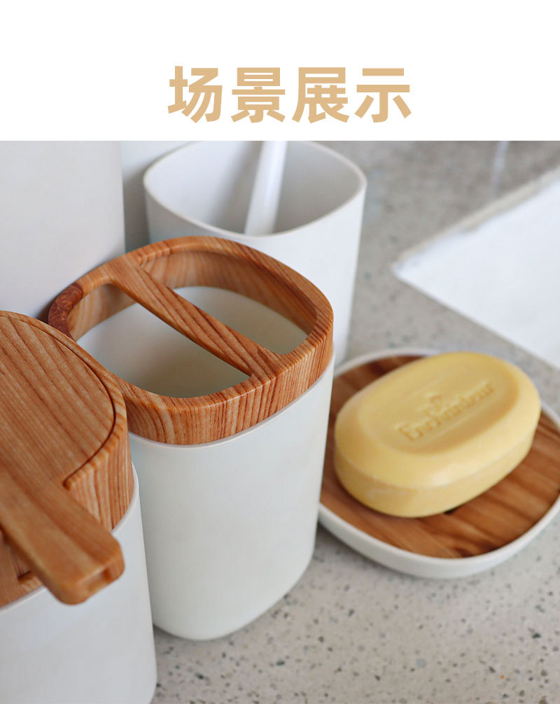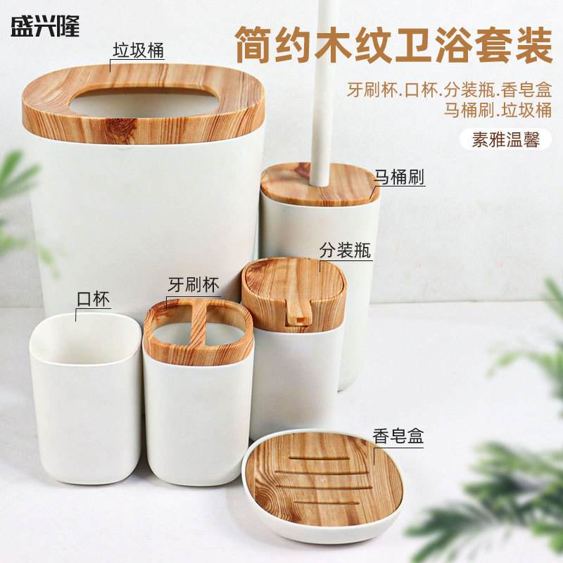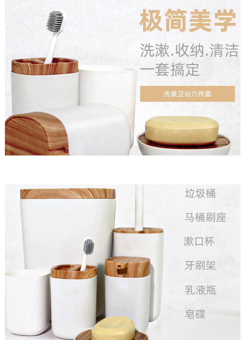 북유럽 모조 수지 플라스틱 조합 욕실 세트 모조 대나무 목재 욕실 용품 장식품 세면 용품 6 개 세트