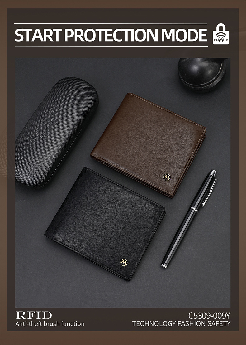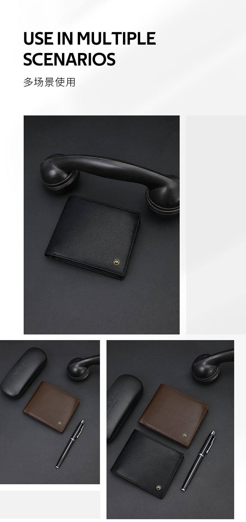 새로운 내마모성 남성용 지갑, 천연 소가죽 가로형 초경량 도난 방지 멀티 카드 슬롯 동전 지갑, 수출용 핸드백