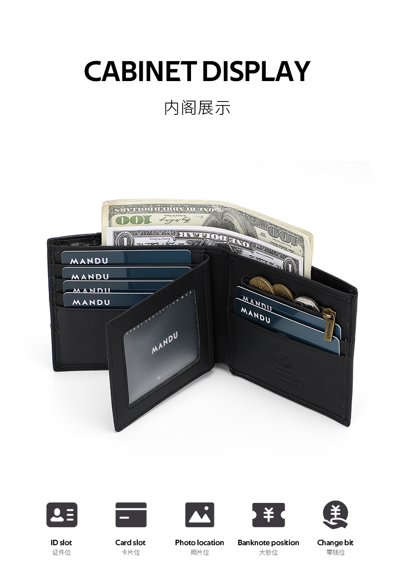 새로운 내마모성 남성용 지갑, 천연 소가죽 가로형 초경량 도난 방지 멀티 카드 슬롯 동전 지갑, 수출용 핸드백스토어 가기