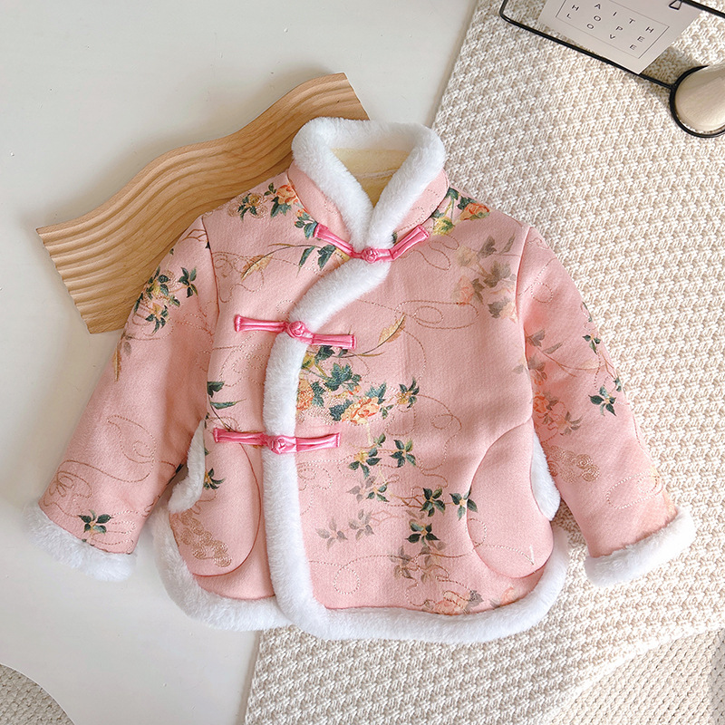 어린이 중국 스타일의 탕 세트 기모 면화 패딩 재킷 새해 인사말 옷 소년 소녀 아기 버클 고대 스타일 따뜻한 겨울 복고풍스토어 가기