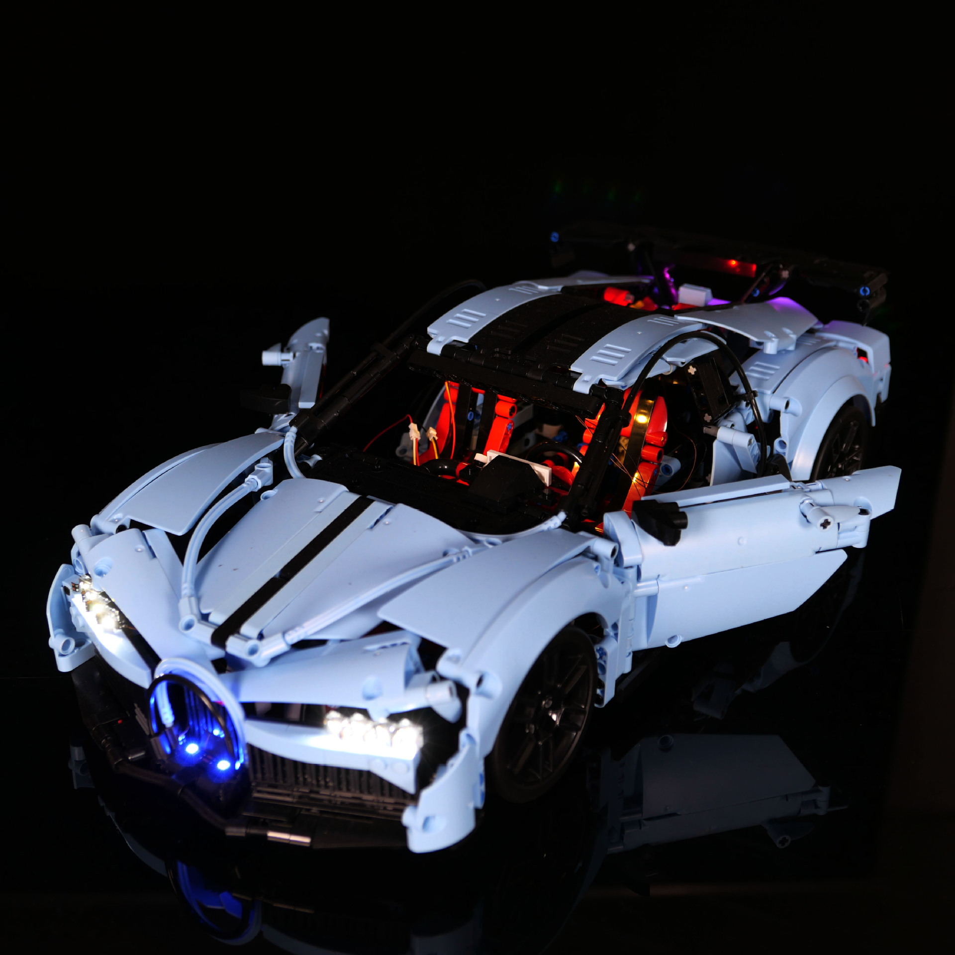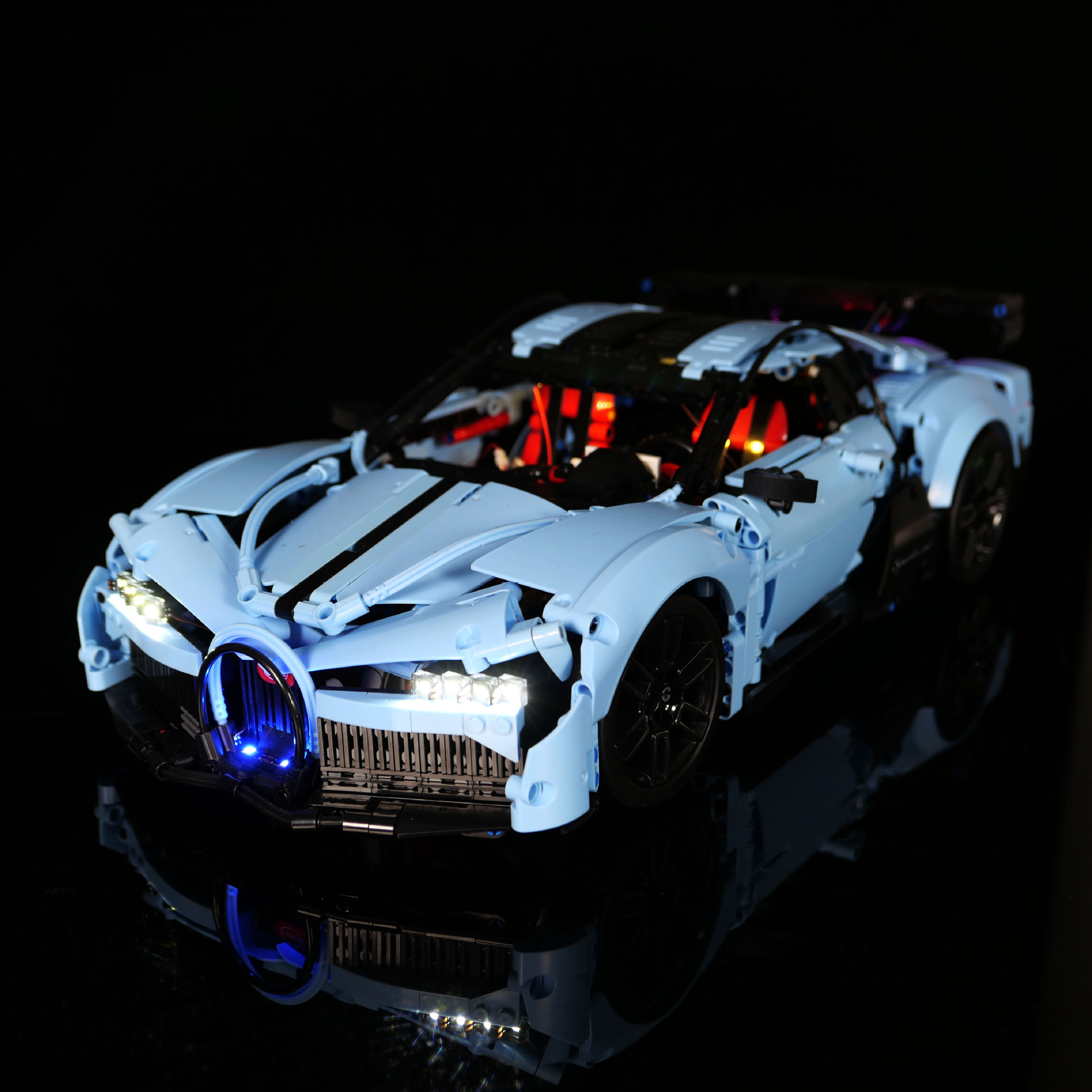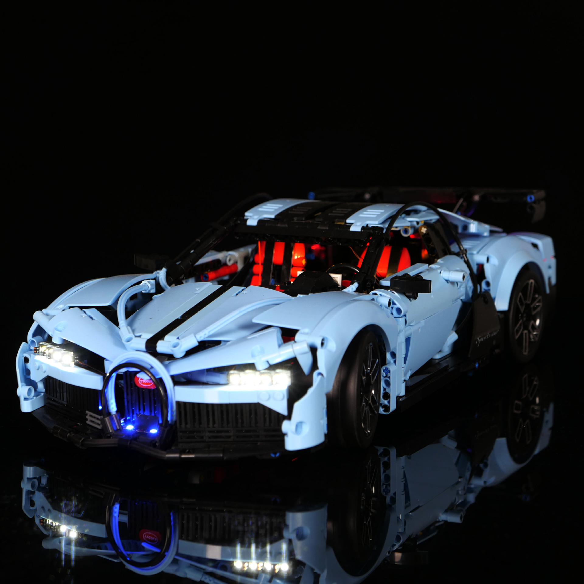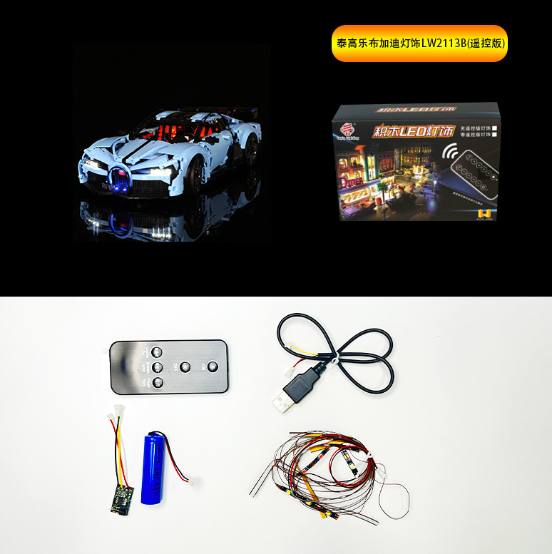 DIY 빌딩 블록 조명 taogale 1:10 Bugatti 럭셔리카 로고 드리프트 기계 그룹 조립 LED 원격 제어 조명