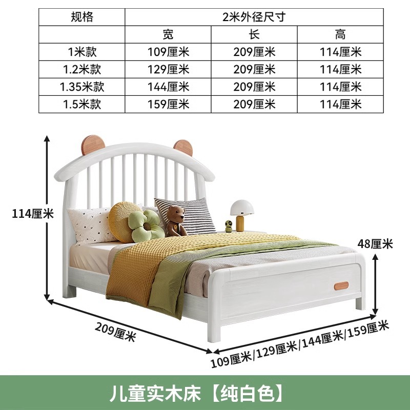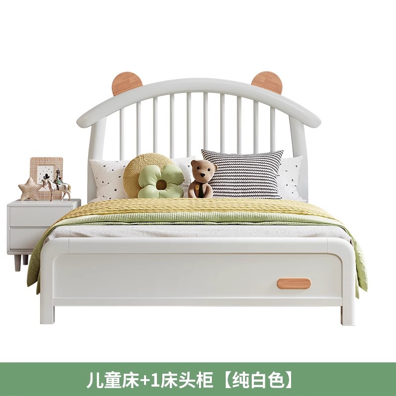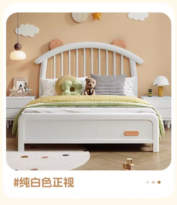 • 어린이 단단한 나무 침대 [순수한 흰색] + 1 장