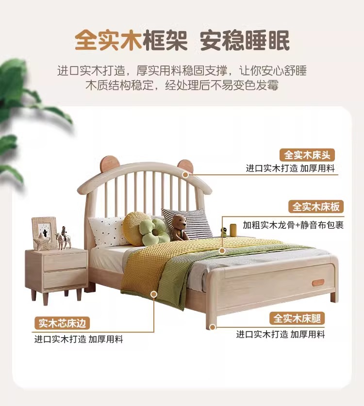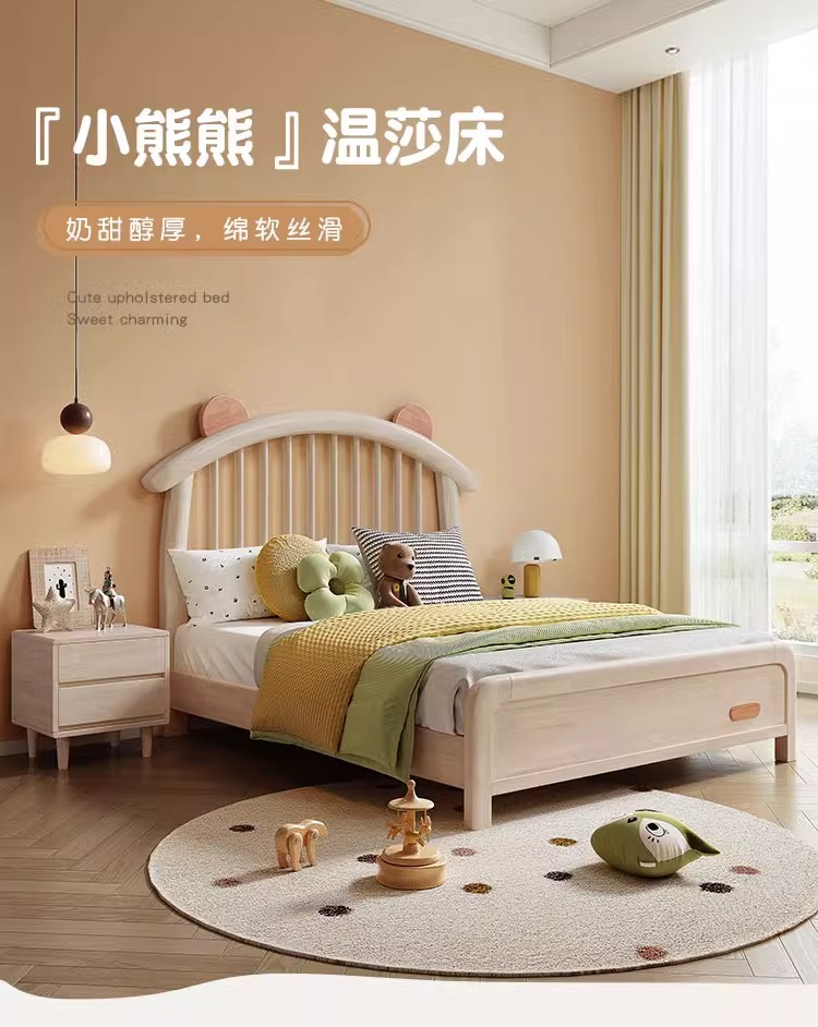 어린이 침대 단단한 나무 1 m 2 m 곰 침대 소년 소녀 침대 작은 아파트 간단한 스타일 어린이 방 1.5m 싱글 침대스토어 가기