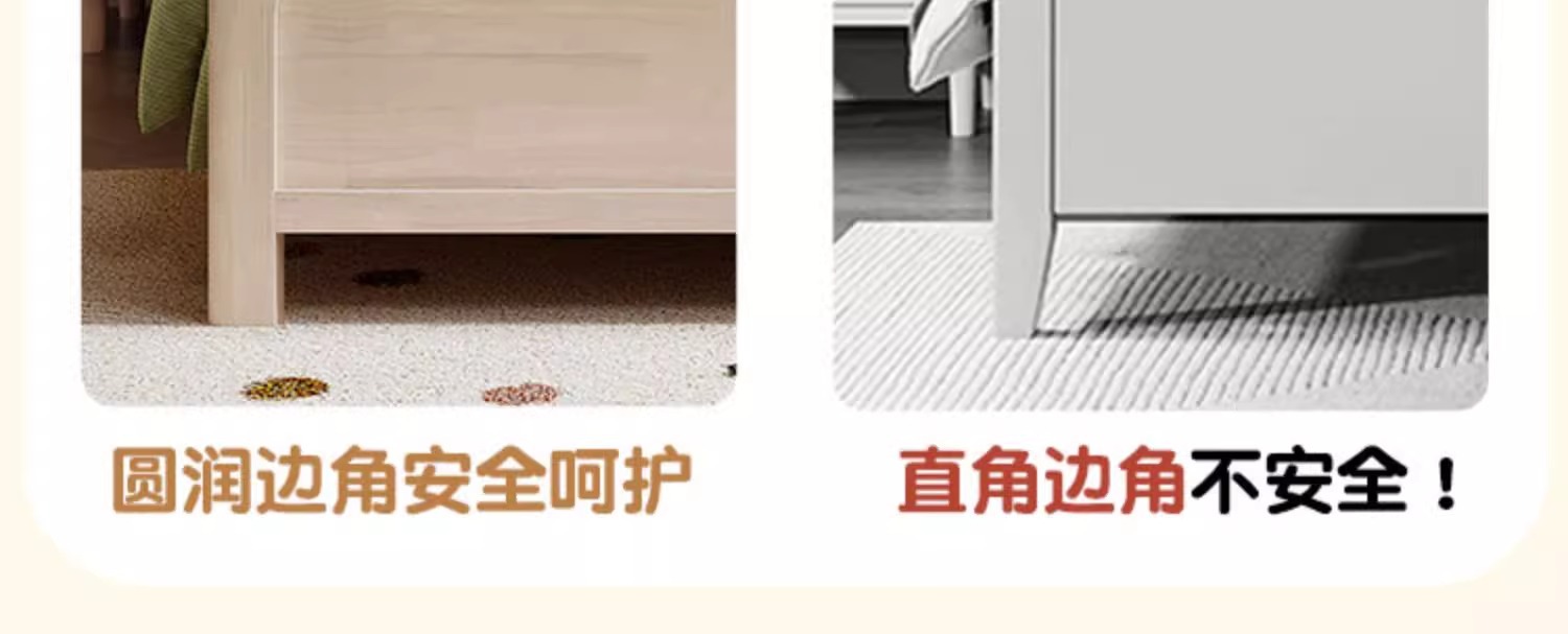 • 어린이 단단한 나무 침대 [따뜻한 살구색]]