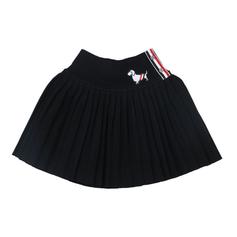 2023 겨울 새로운 여성 의류 대조 컬러 줄무늬 TB 강아지 수 놓은 큰 진자 미니 스커트 니트 오버 스커트 스팟