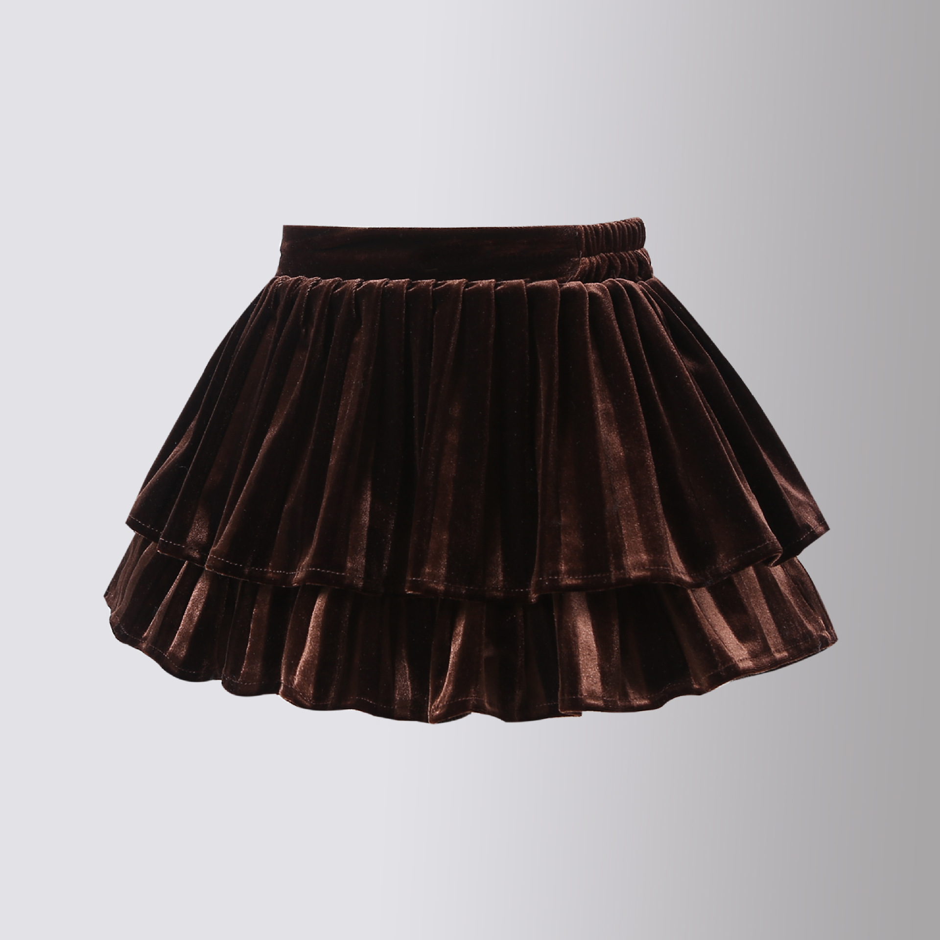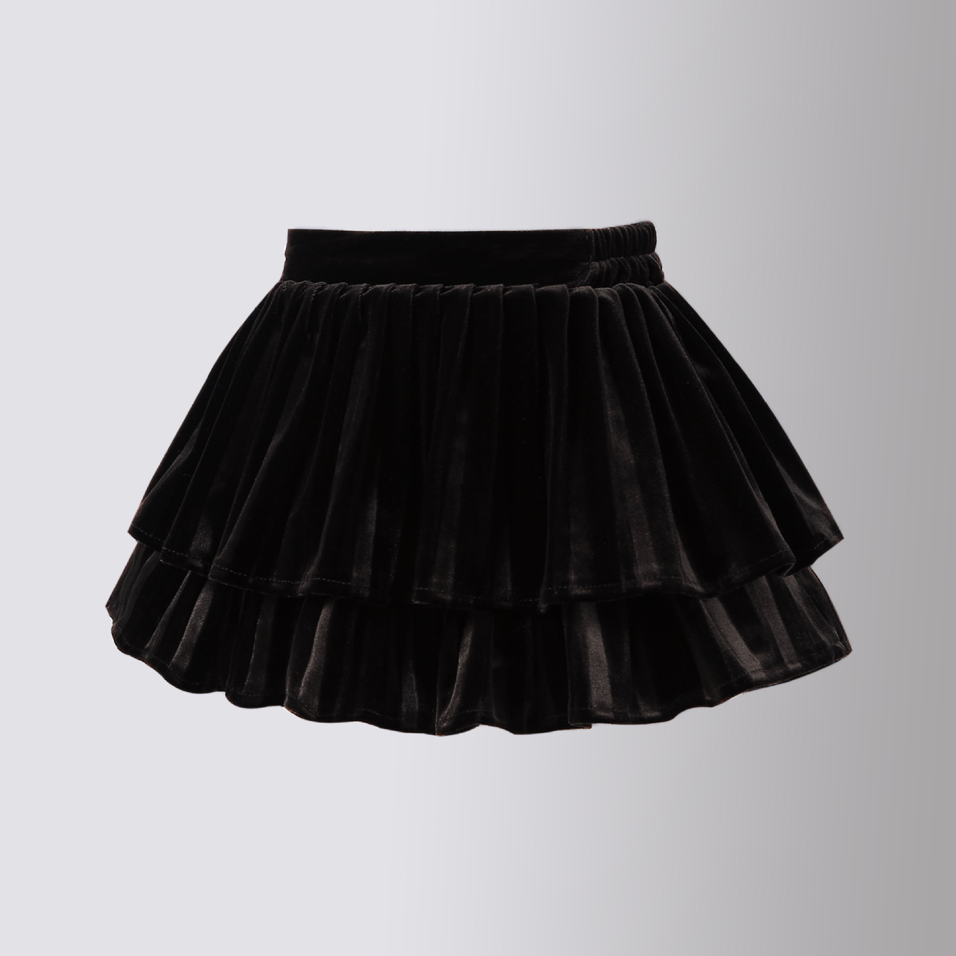 골드 벨벳 주름 치마 소녀의 검은 가을과 겨울 프랑스 더블 레이어 케이크 푹신한 스커트 A-라인 우산 스커트